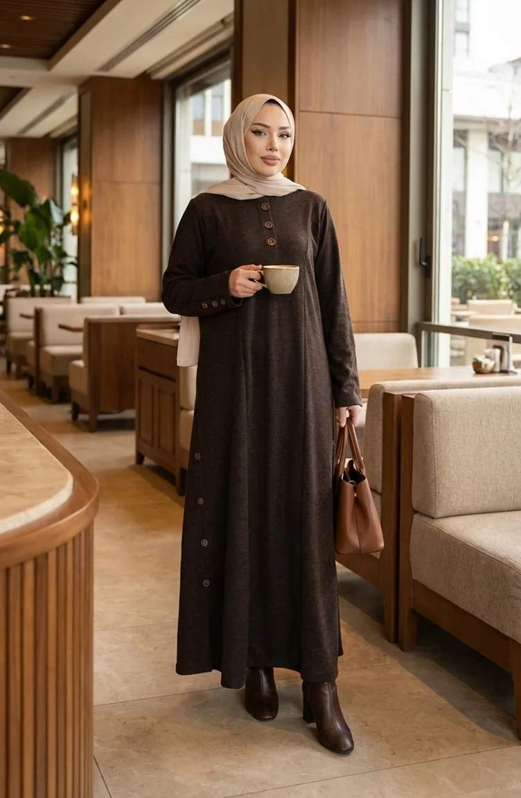 Winterkleid Aus Strickstoff Mit Knopfleiste Modell 2183-02 Braun 2183-02