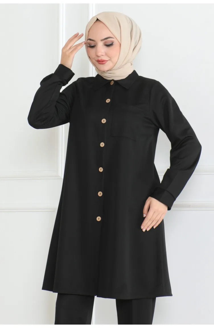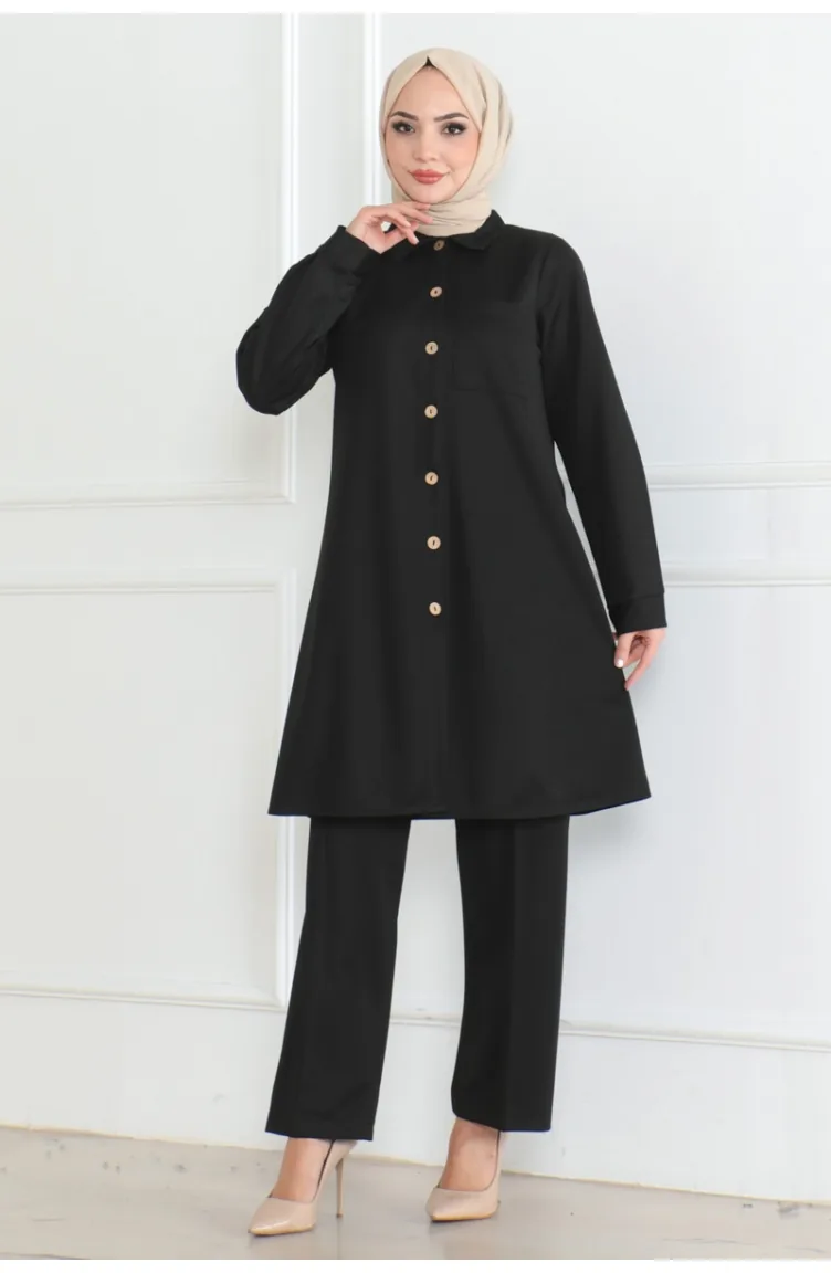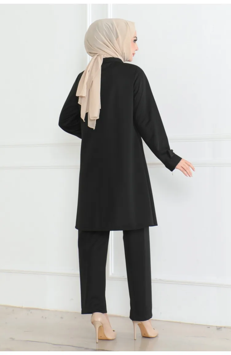 Doppelter Anzug Mit Taschendetails 1080-01 Schwarz 1080-01