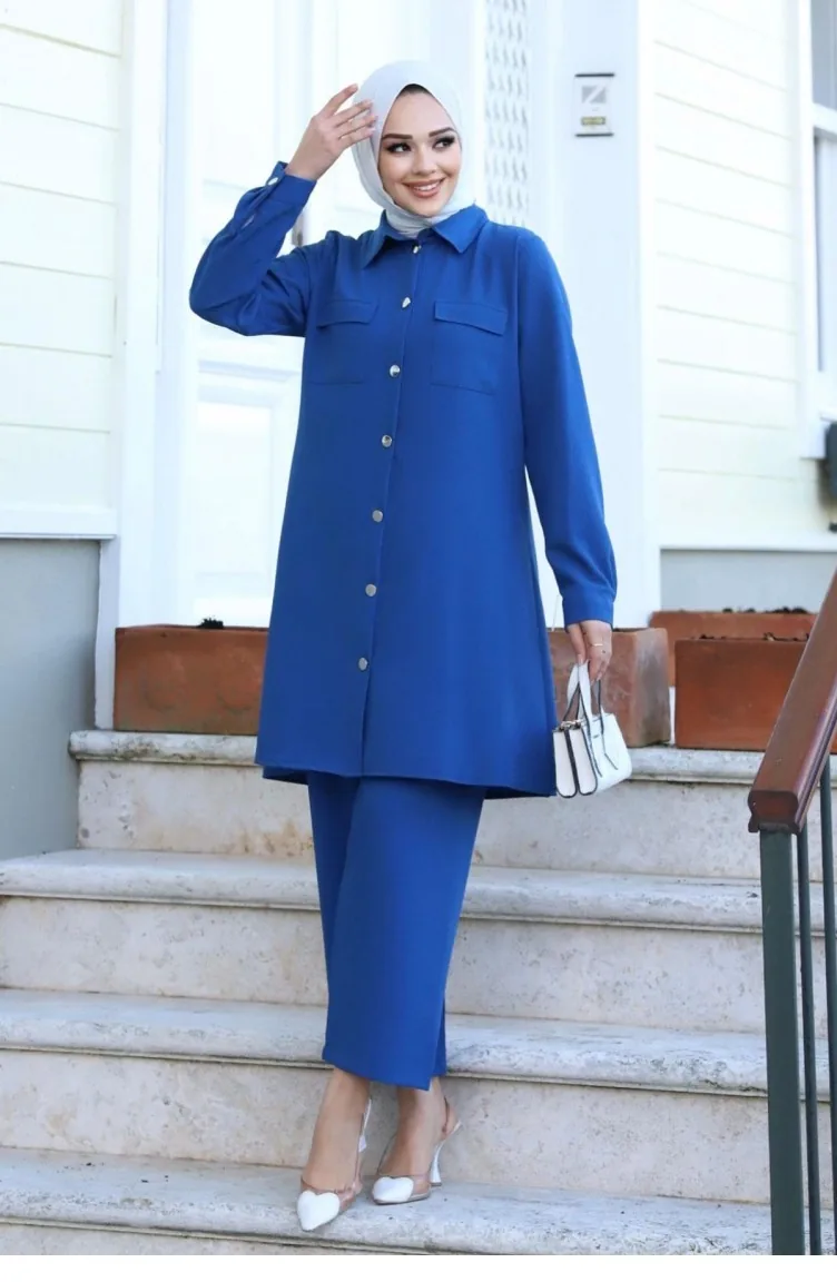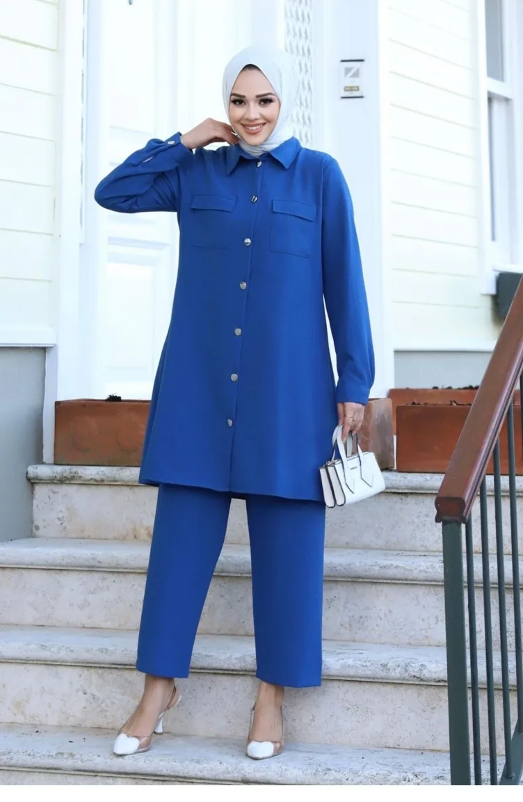 Hijab-Indigo-Anzug Mit Taschendetail 418