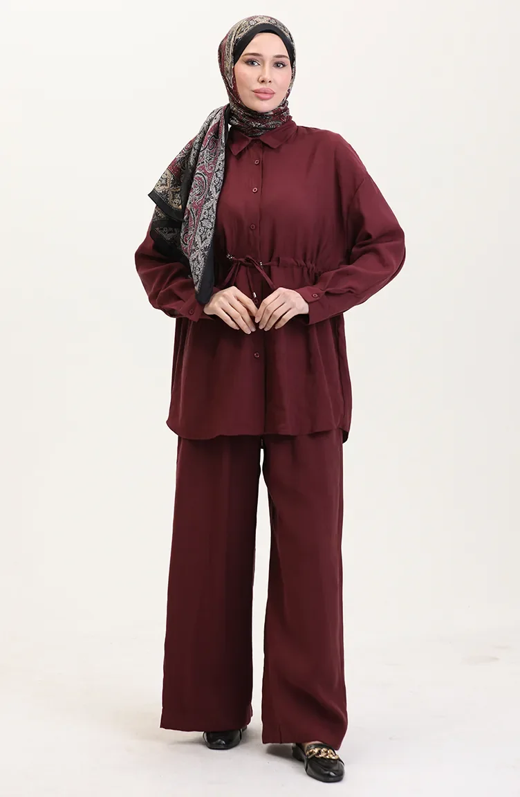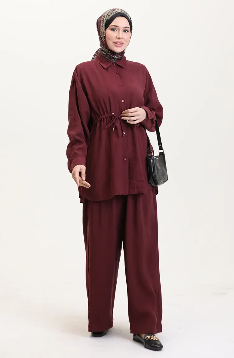 Modal Stoff Tunika Hose Zweiteiler 4064-01 Weinrot 4064-01