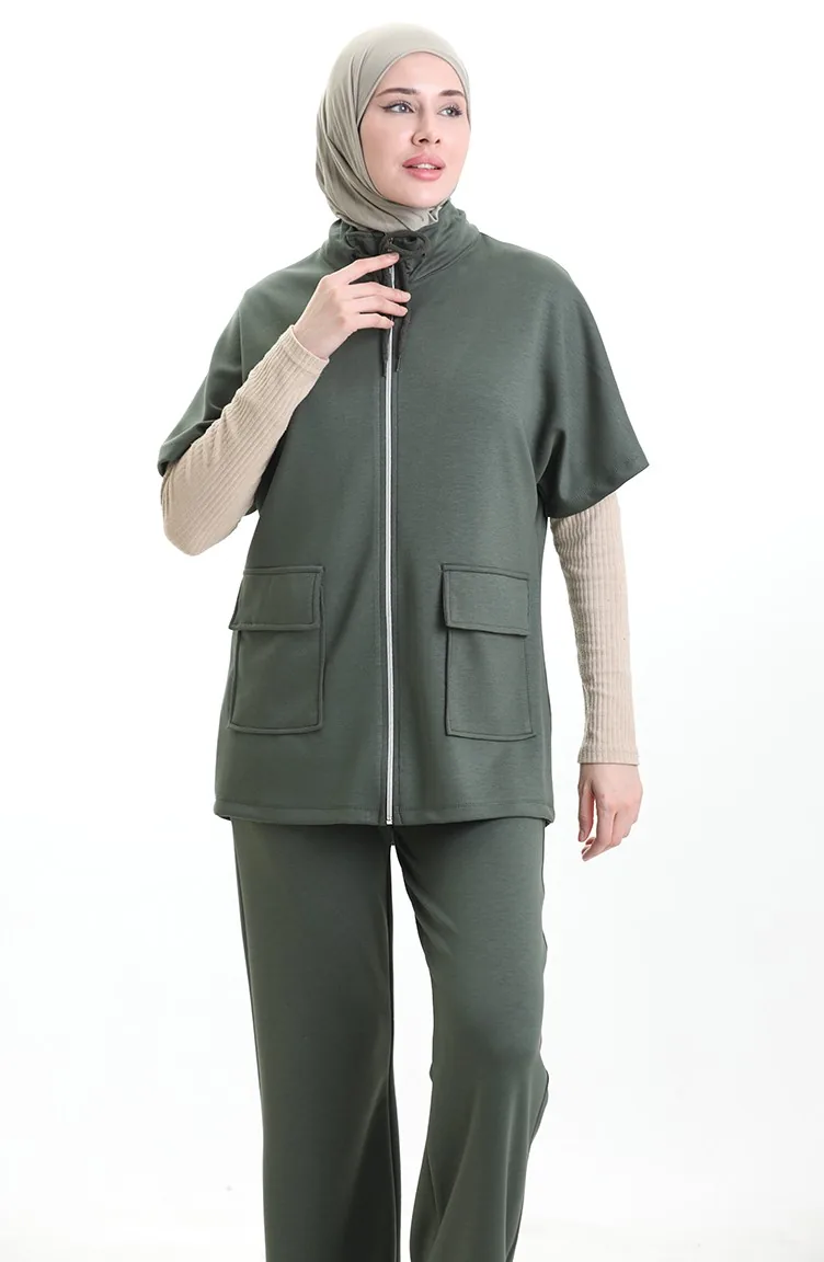 Es hat Khaki-Farbe. Baumwollgewebe hat eine saugfähige Textur. Es ist eine klare Sicht. Reißverschluss ist für die einfache Handhabung verwendet. Es wurde mit kurze Ärmel gemacht. Es ist für vier Jahreszeiten geeignet. Der Körpergröße, den die Models trägt, ist optisch visuelle körpergröße.