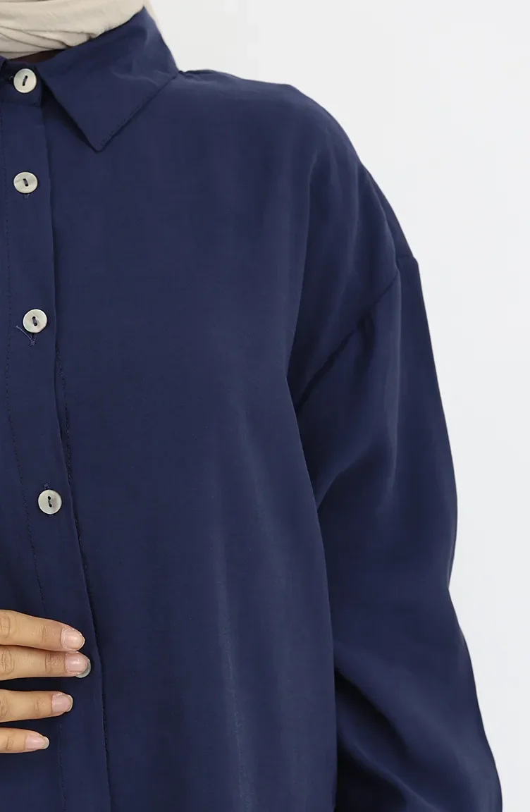 Dunkelblau farbe wurde verwendet. Modal Stoff wird verwendet. Es ist eine klare Sicht. Es wurde mit Knopf verwendet, um die Verwendung zu vereinfachen. Hemdkragen ist ein Muss für viele Kombinationen. Entwickelt für den Sommer. Große Größen Option ist verfügbar.