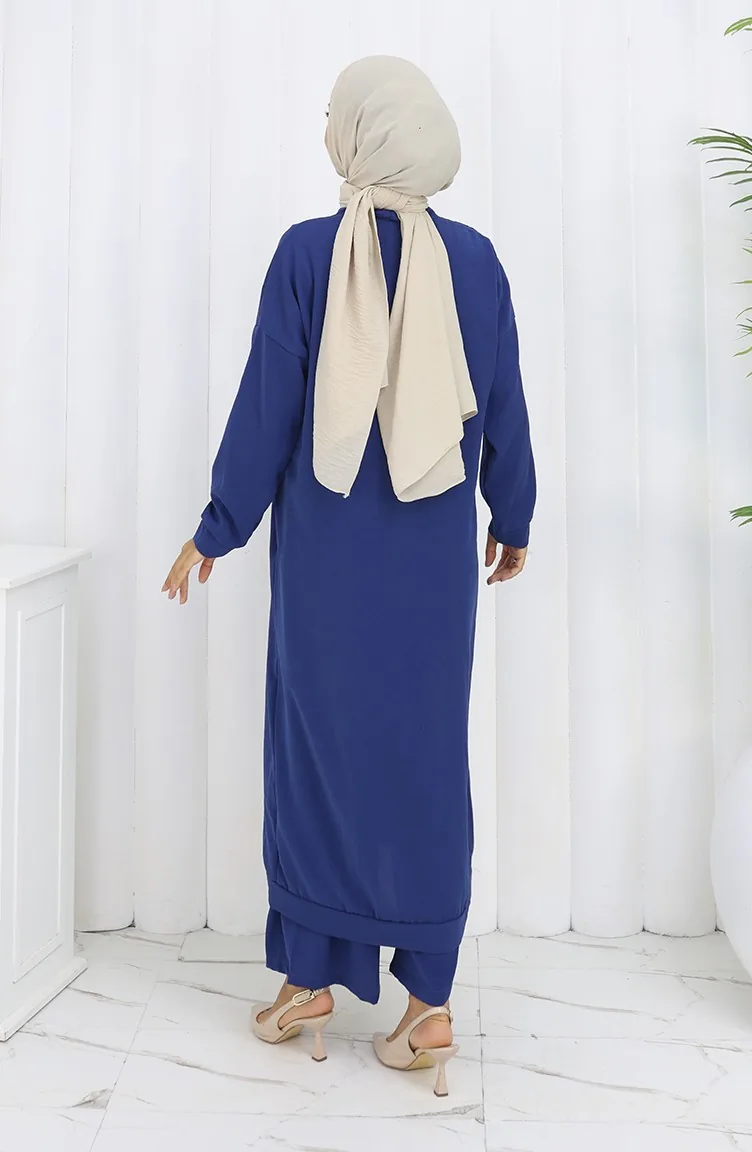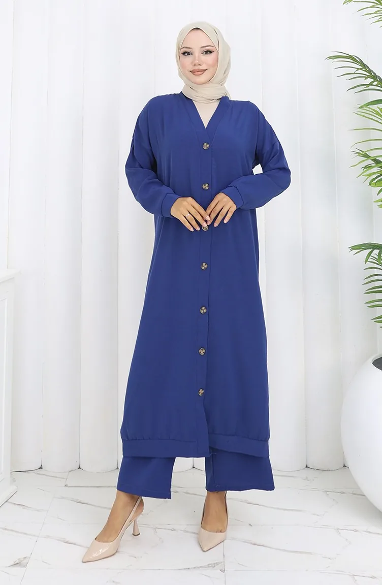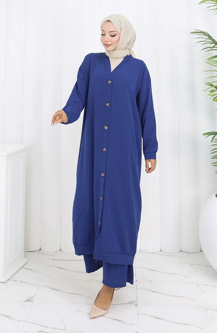 Zweiteiliger Anzug Aus Strickjacke Und Hose Mit Knöpfen 0138-08 Marineblau 0138-08