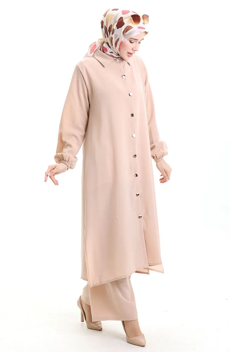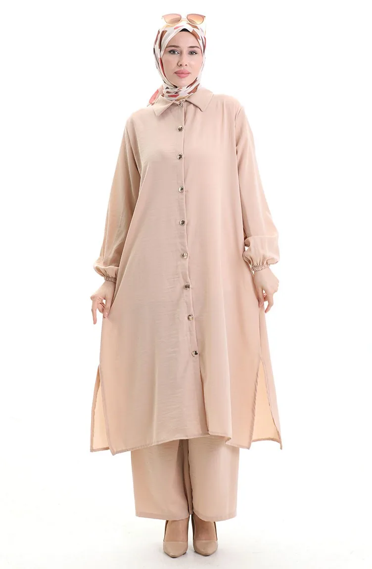 Zweiteiliger Anzug Mit Langer Tunika Und Hose 0089-09 Nerz 0089-09