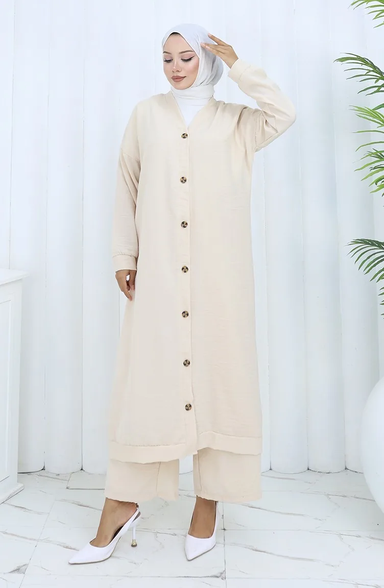 Zweiteiliger Anzug Mit Strickjacke Und Hose 0138-03 Beige 0138-03