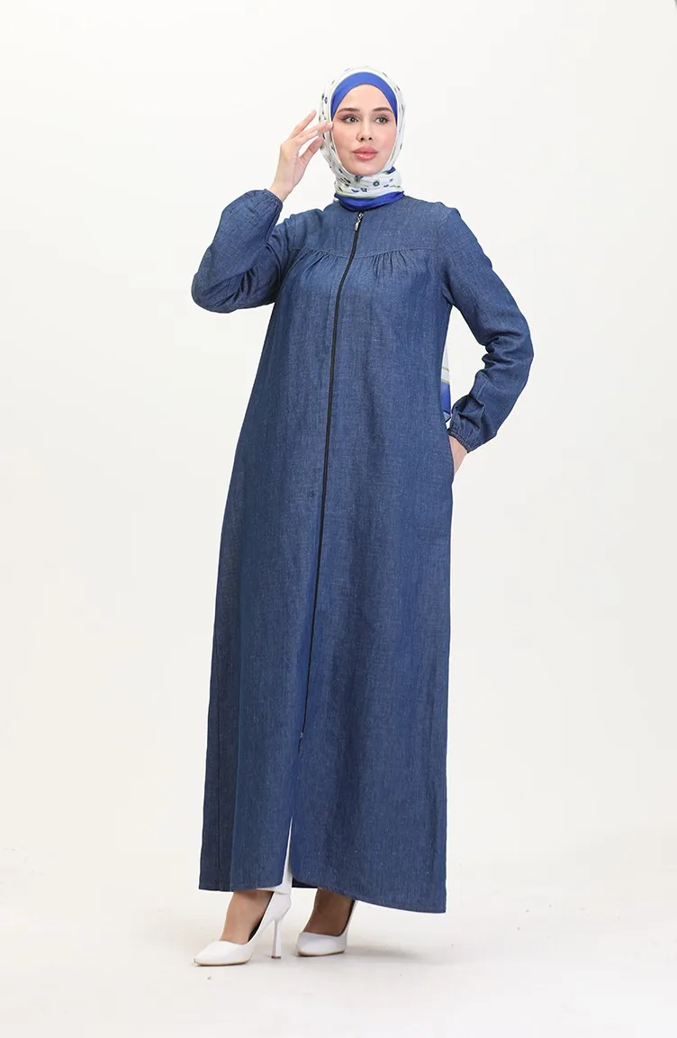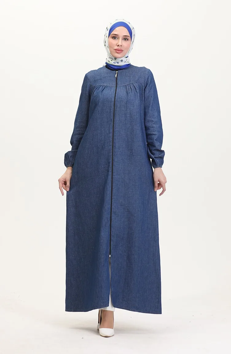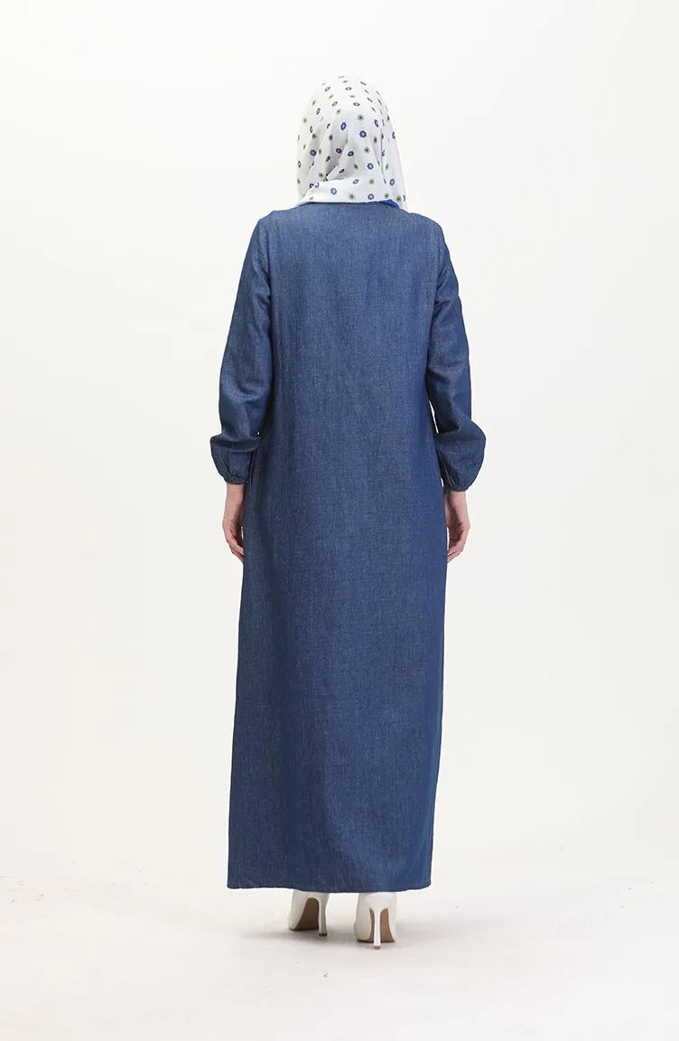 Geraffter Denim-Abaya Aus Tensel-Stoff 2030-01 Hellblau 2030-01