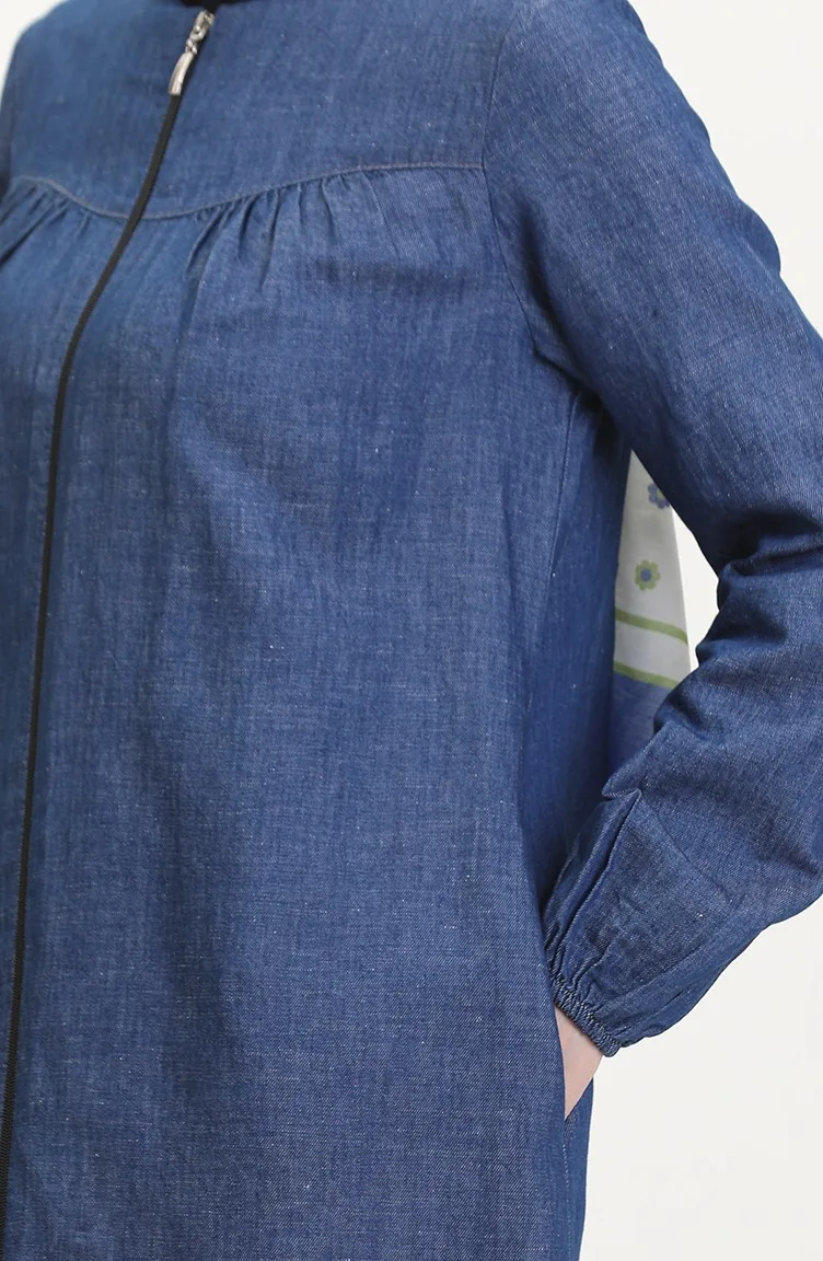 Es hat eine hellblaue Farbe. Es hat Baumwollgewebe. Es ist eine klare Sicht. Reißverschluss ist für die einfache Handhabung verwendet. Es besteht aus Gummi Ärmeln. Es ist für vier Jahreszeiten geeignet. Große Größen Option ist verfügbar.