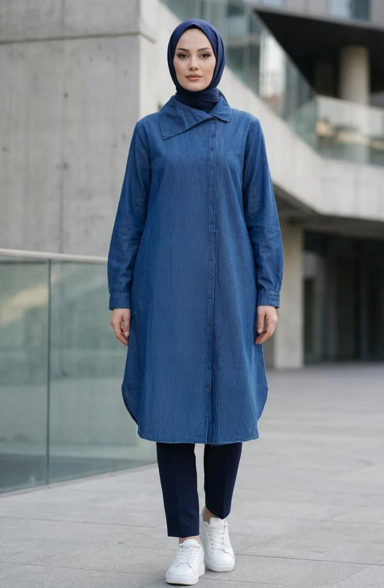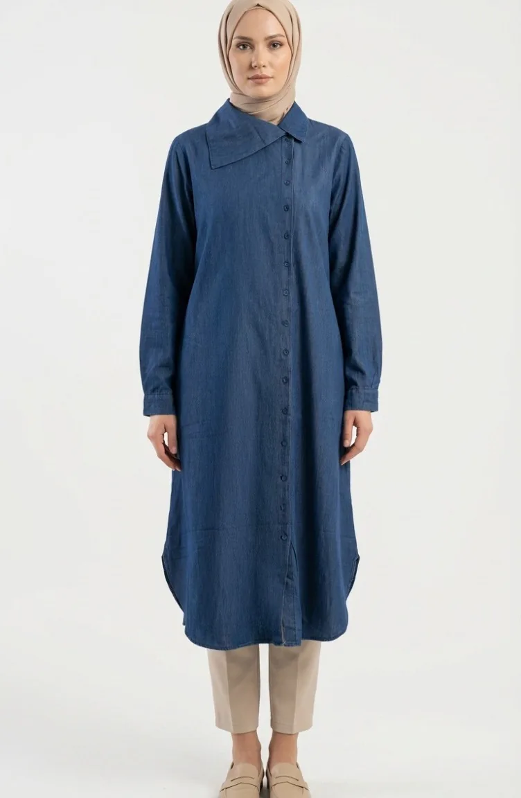 Jeans-Tunika In Voller Länge Mit Knöpfen 0312-02 Marineblau 0312-02