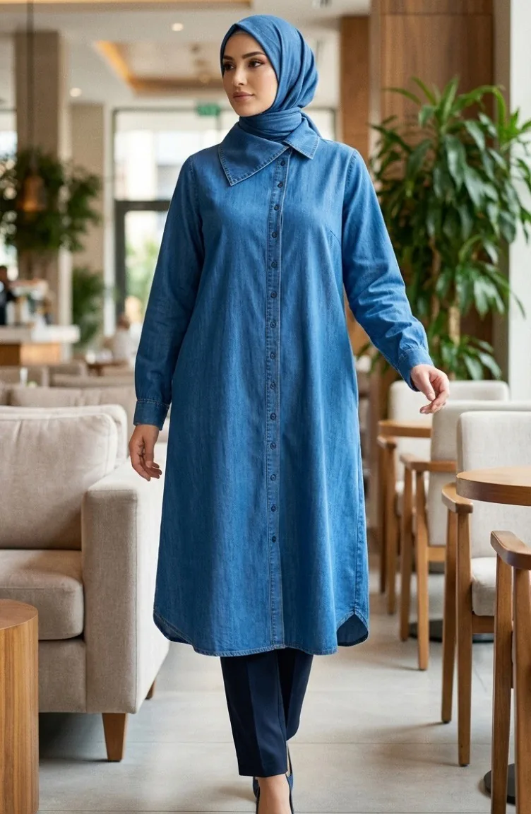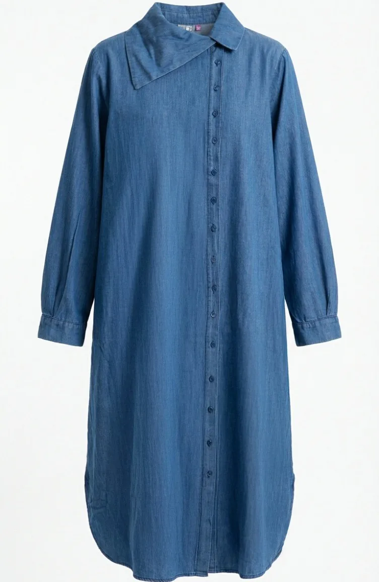 Jeans-Tunika Mit Knöpfen In Voller Länge Farbe: Blau Modell 0312-01 0312-01