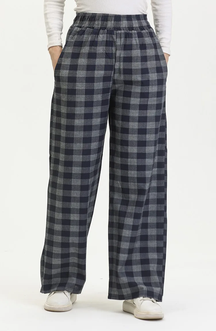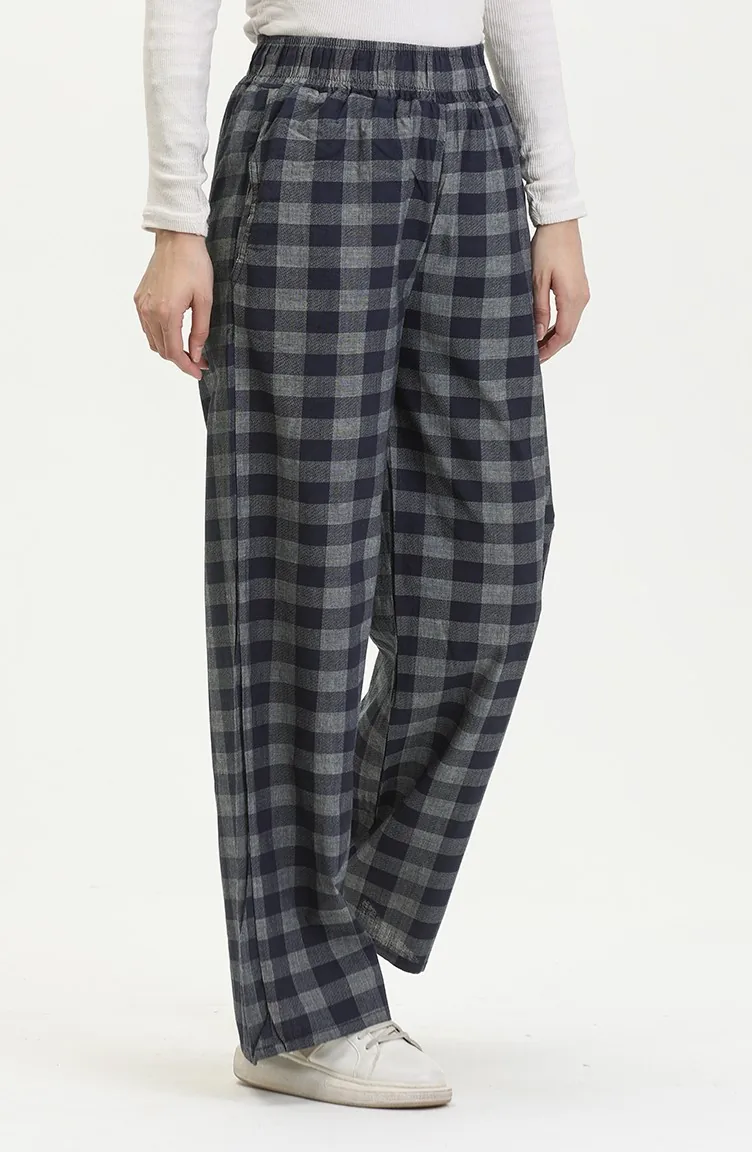 Jeanshose Mit Elastischem Bund Und Kariertem Muster 2734-02 Marineblau 2734-02