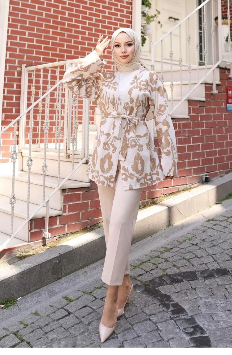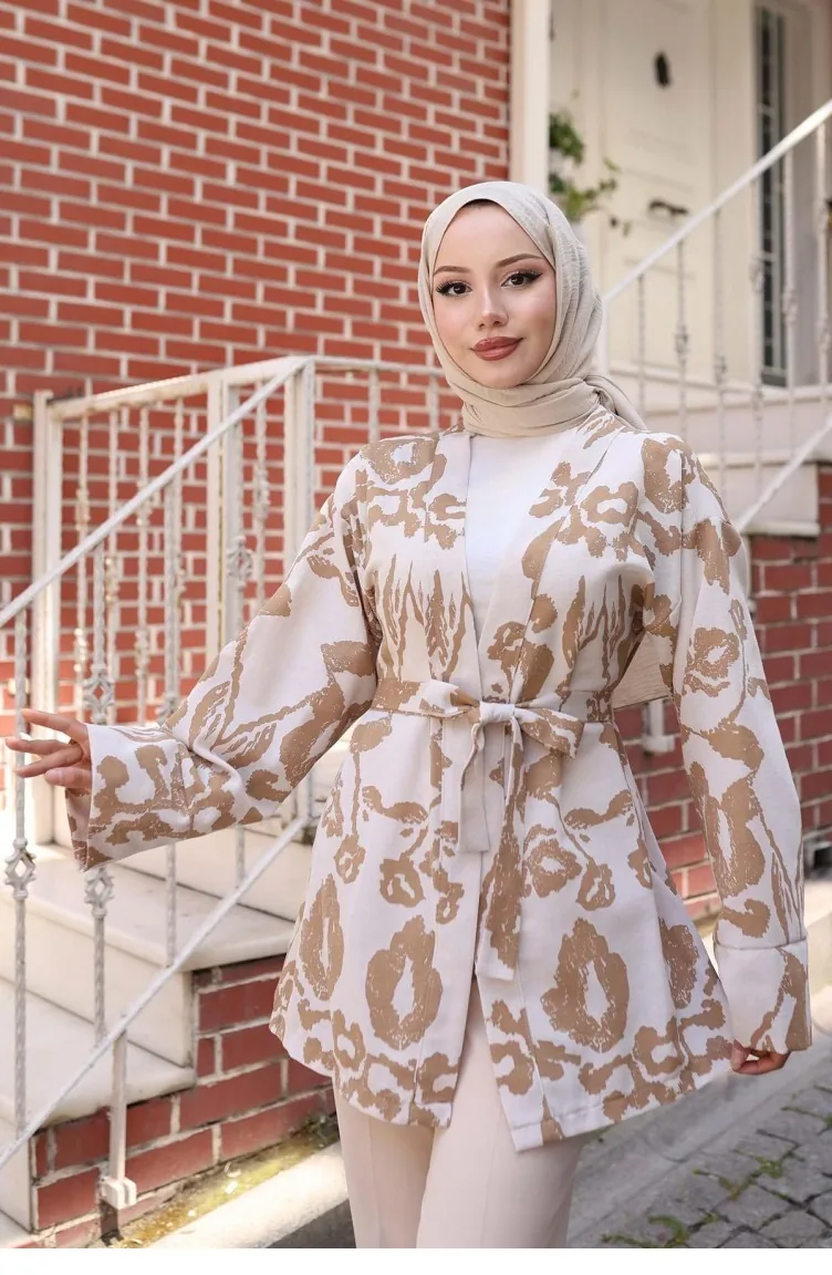 Kimono Mit Ethnischem Muster In Kamel 738