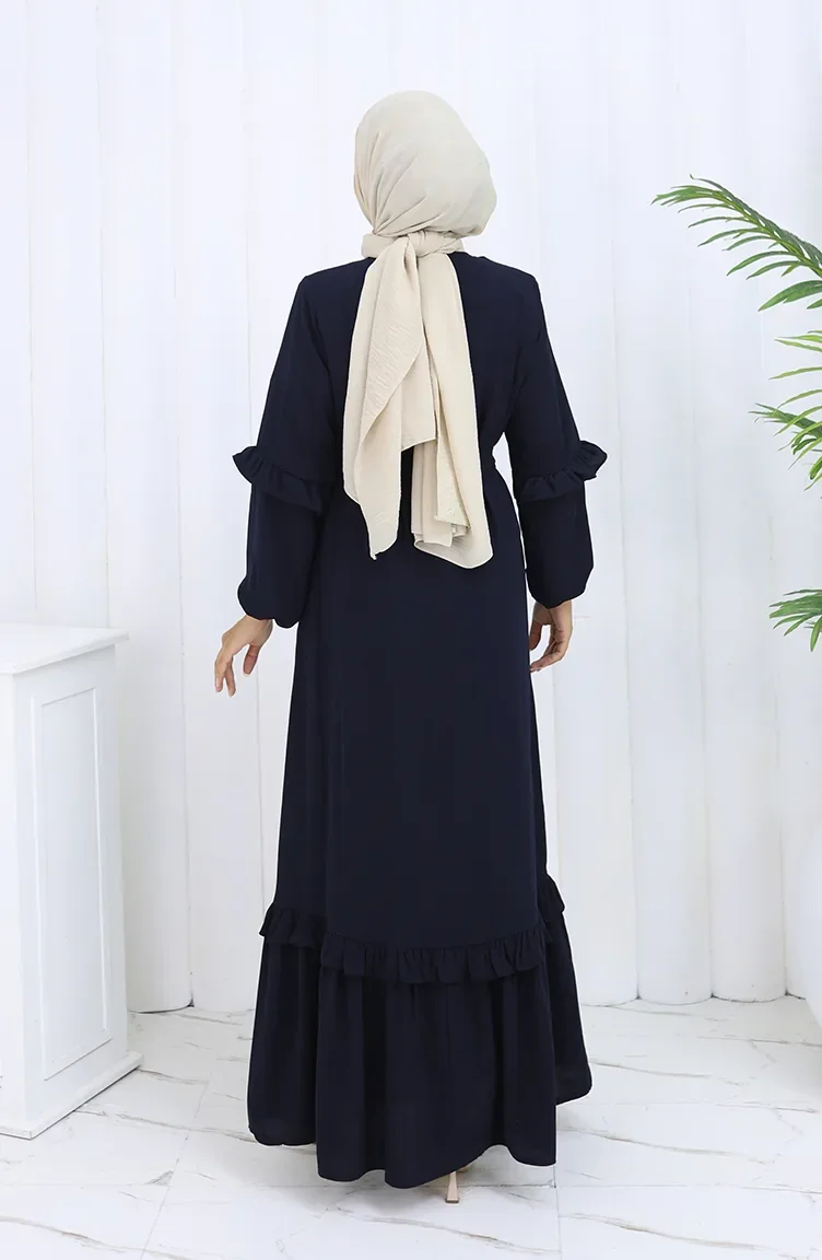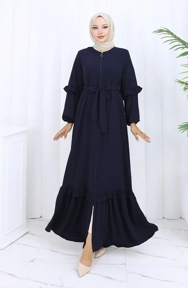 Abaya Mit Gürtel Und Reißverschluss 6278-02 Dunkelblau 6278-02