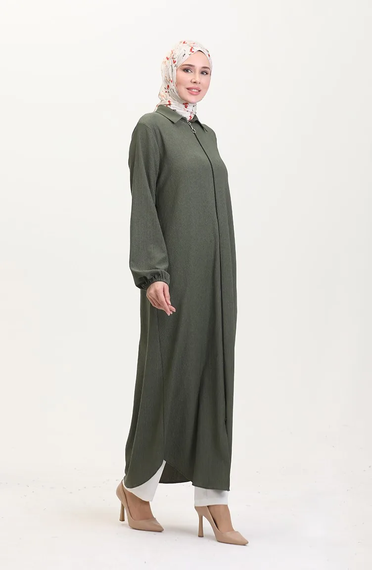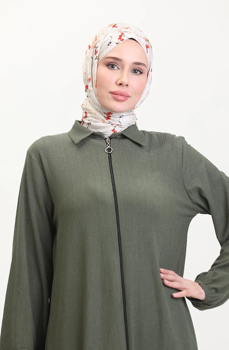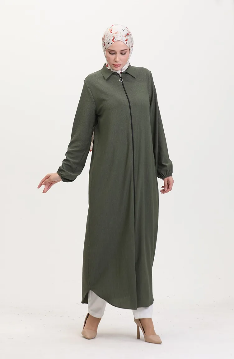 Abaya Mit Kragen Und Reißverschluss 1021-01 Khaki 1021-01