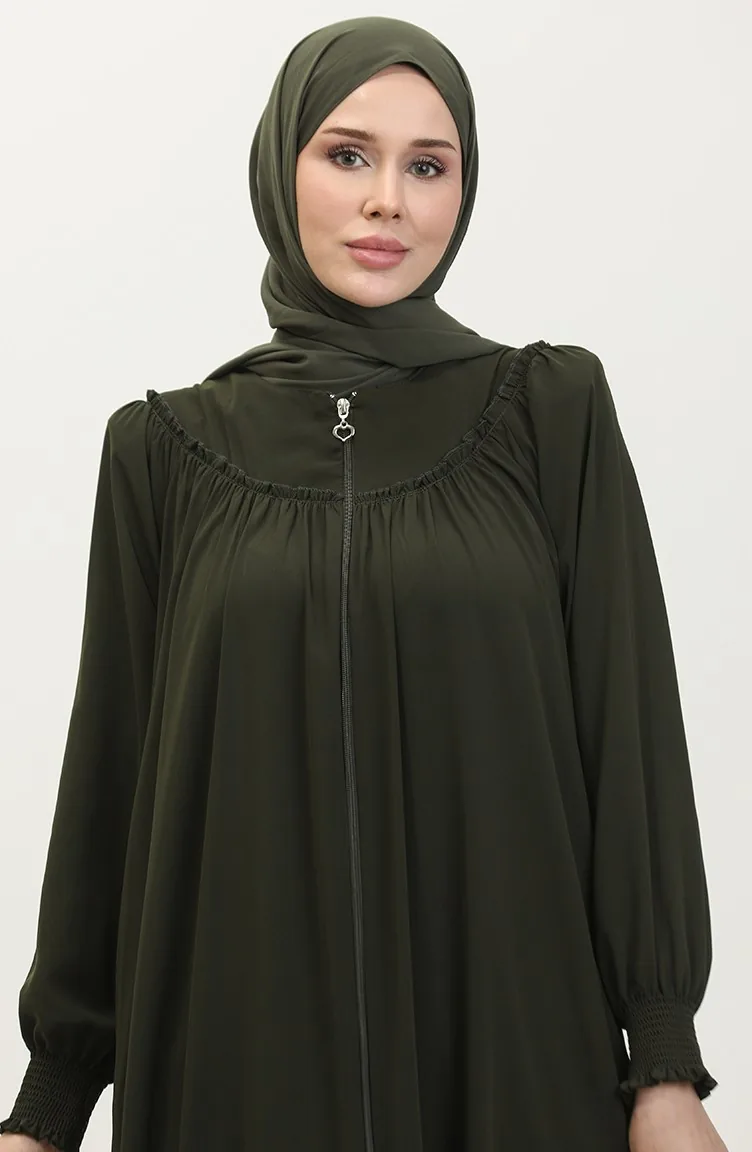 Gıpeli Abaya Mit Reißverschluss 5071-03 Khaki 5071-03