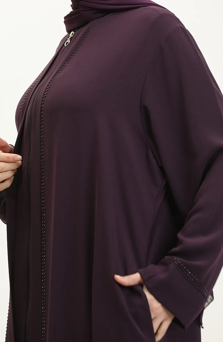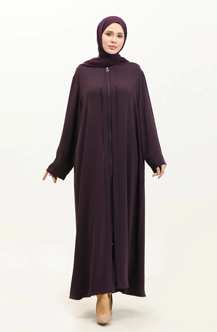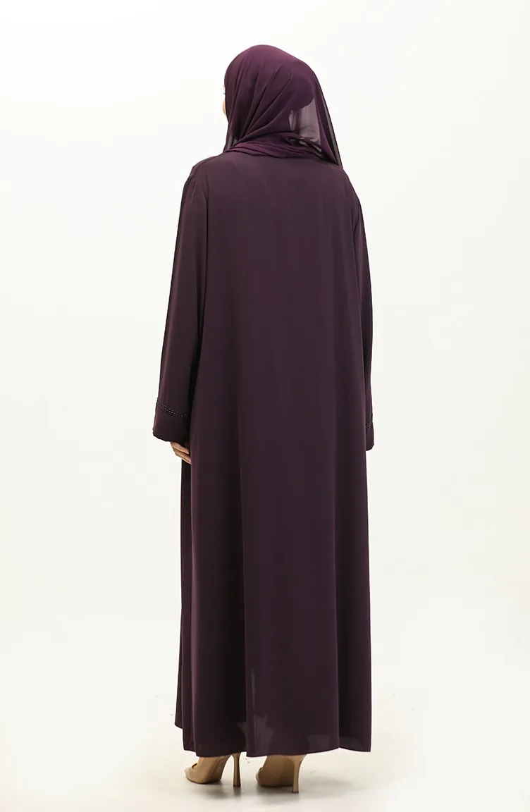 Große Mit Steinen Bedruckte Abaya 4005X-03 Lila 4005X-03