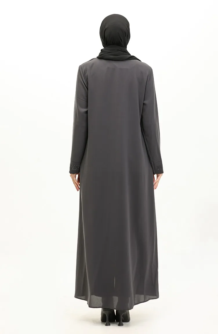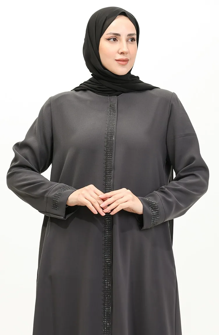 Große Mit Steinen Bedruckte Abaya 5067-06 Geräuchert 5067-06