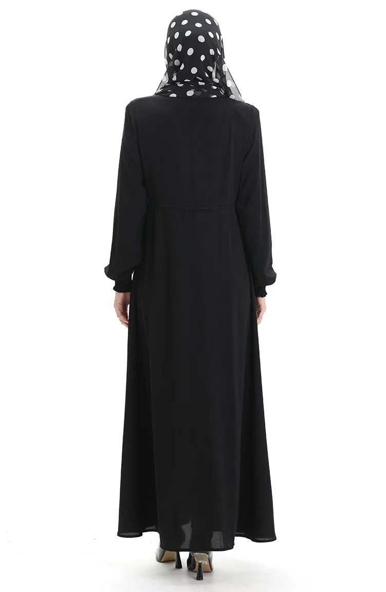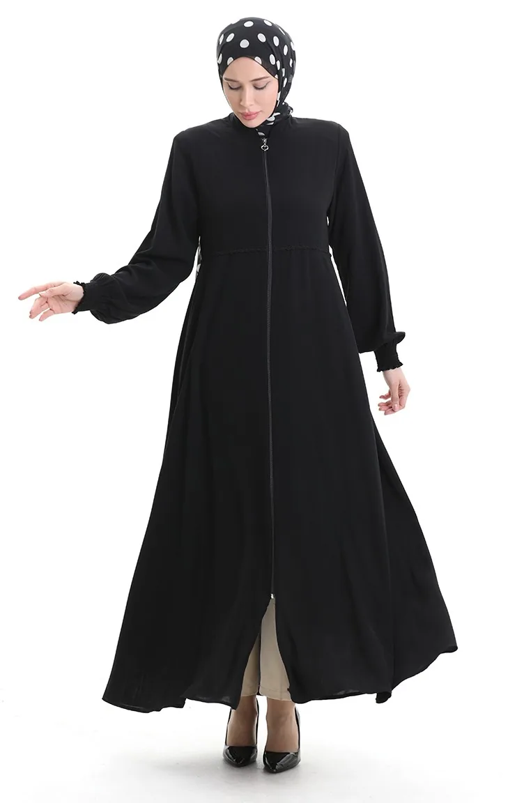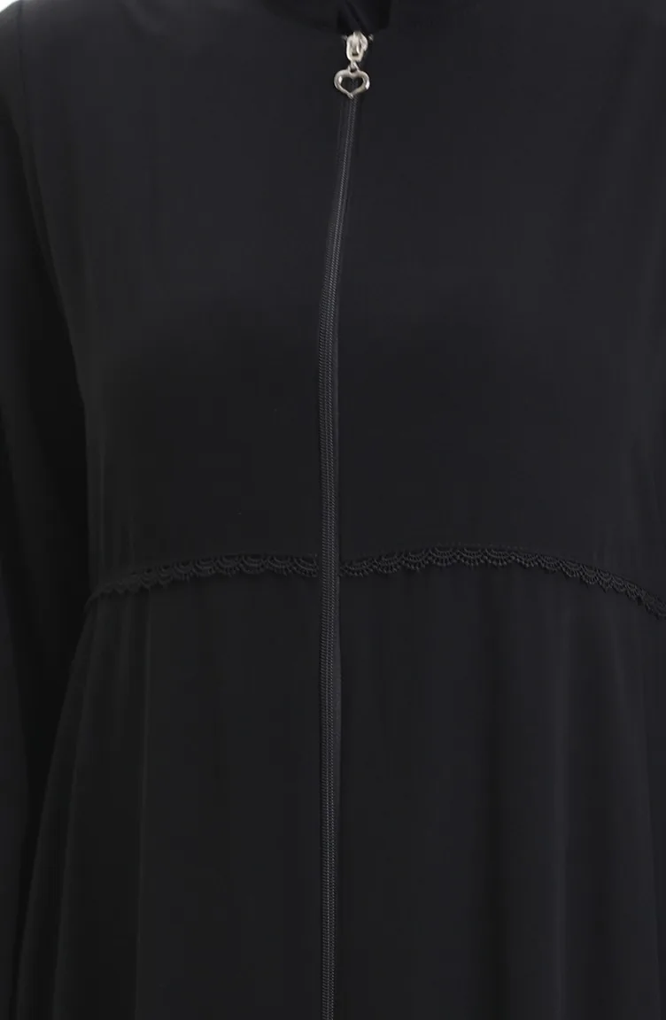 Übergröße Bestickte Abaya Mit Reißverschluss 5079-01 Schwarz 5079-01