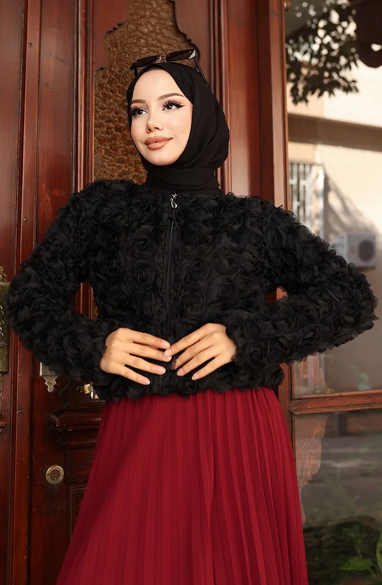 Jacke Mit Rosenprägung Und Reißverschluss 41179-01 Schwarz 41179-01