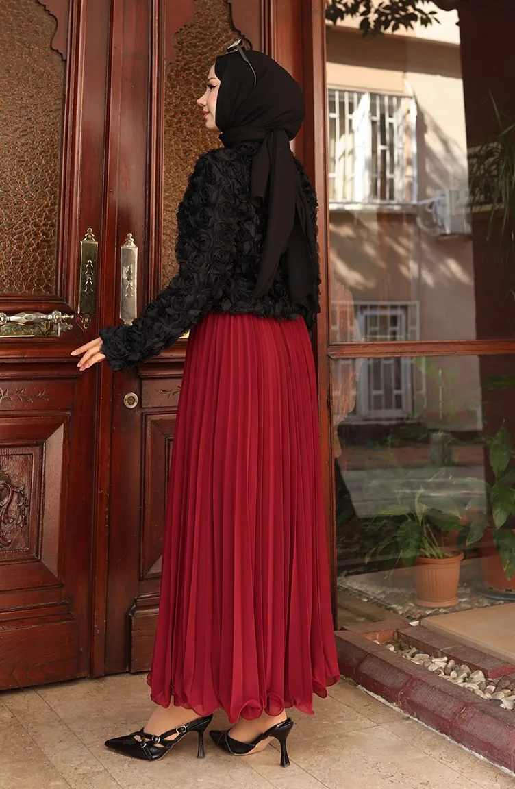 Schwarz farbe verwendet. Tüll Stofftyp. Entworfen mit gemustertem Stoff. Reißverschluss ist für die einfache Handhabung verwendet. Es ist für vier Jahreszeiten geeignet. Die Länge wird gemäß den Standardgrößen angepasst.