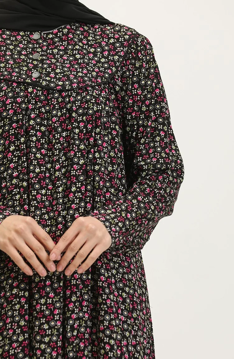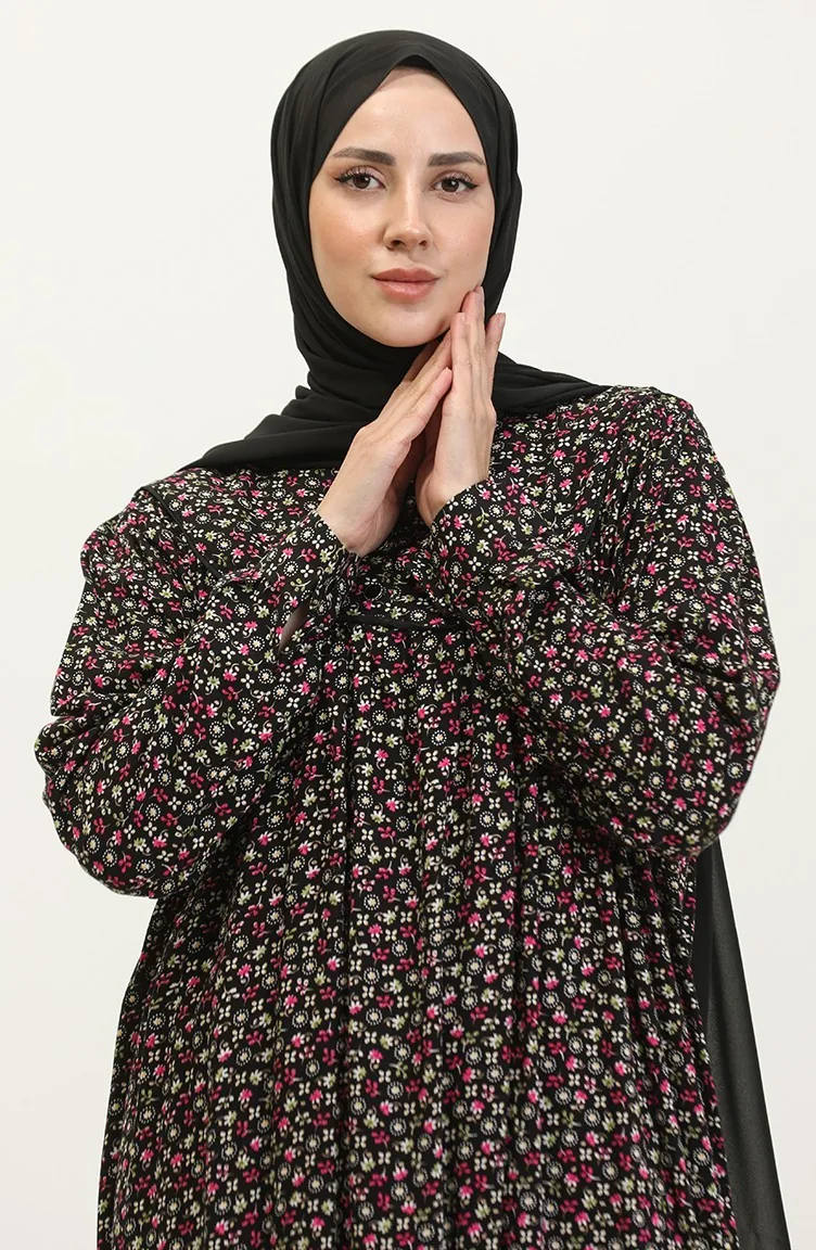Gemustertes Viskosekleid In Übergröße 4473A-04 Schwarz Khaki Grün 4473A-04