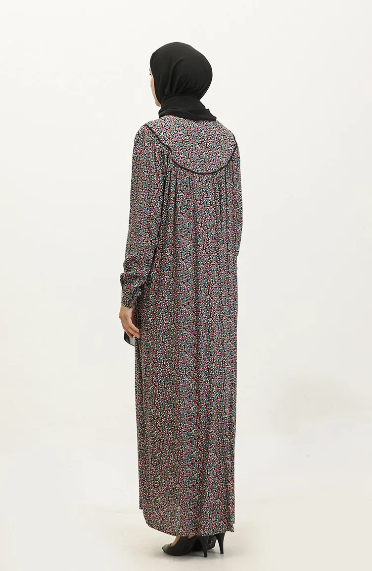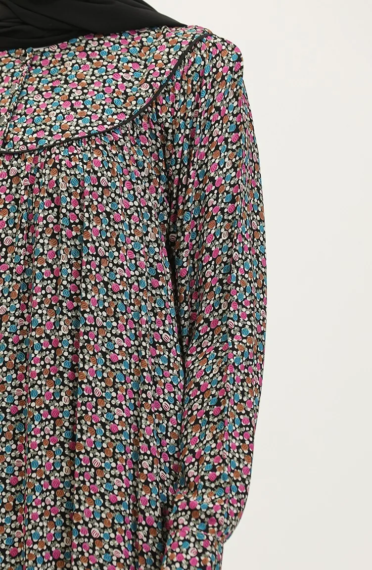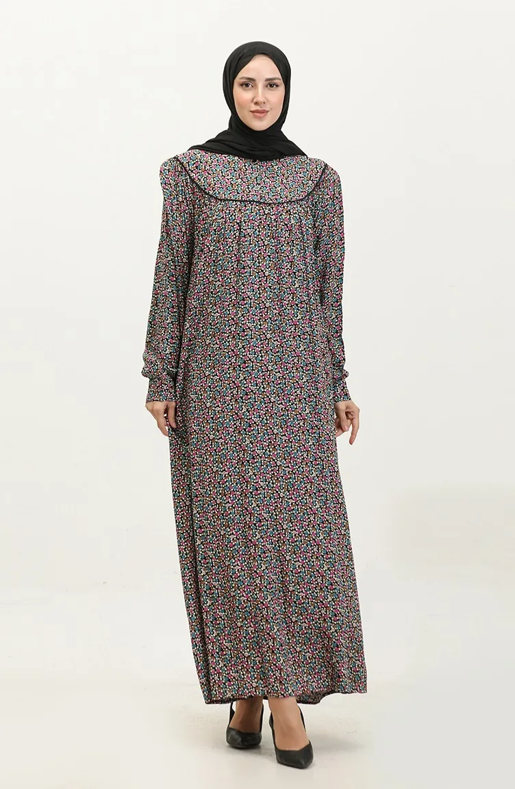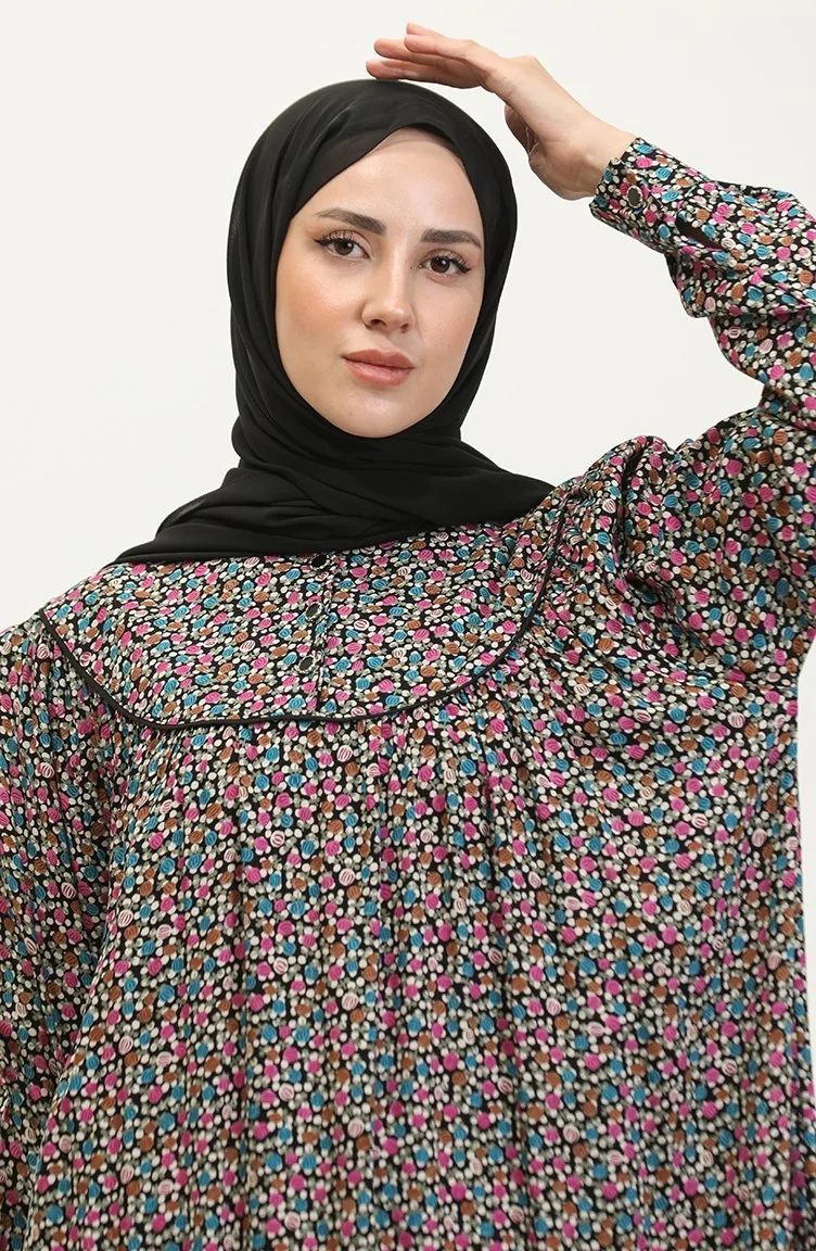 Gemustertes Viskosekleid In Übergröße 4473G-03 Schwarz Khaki 4473G-03