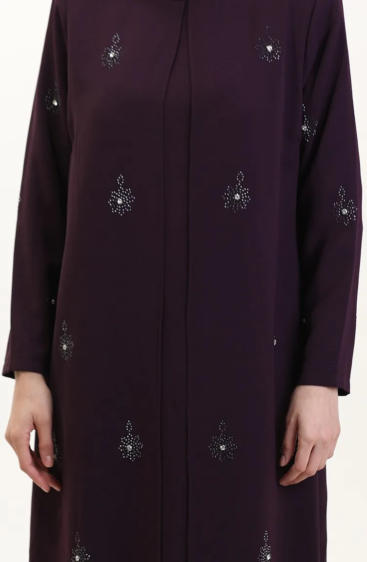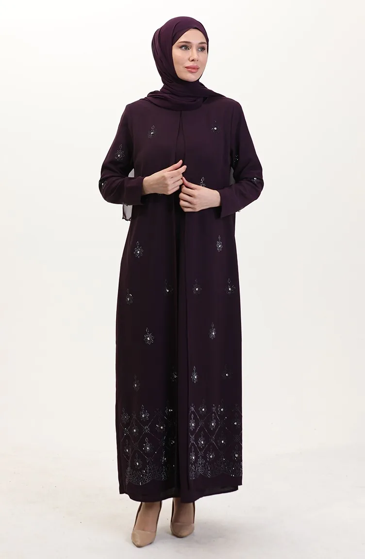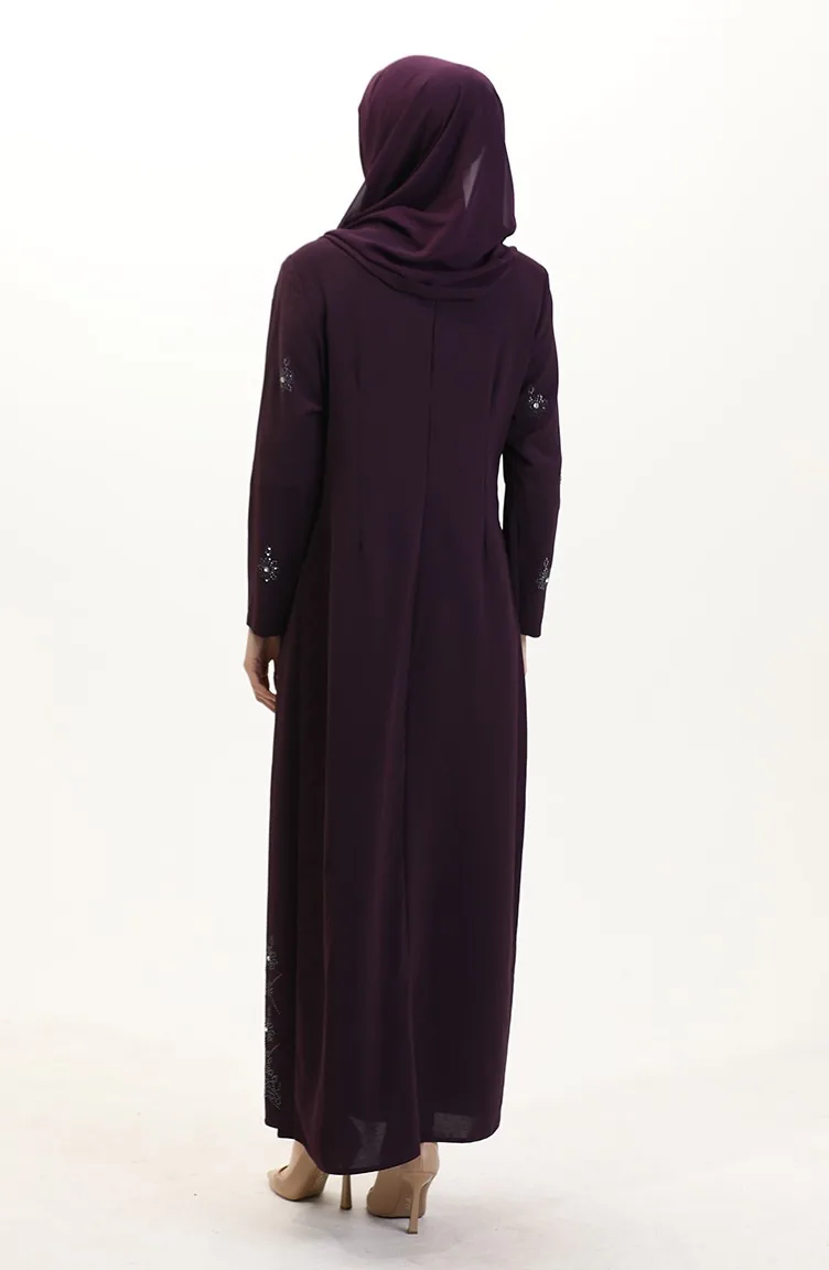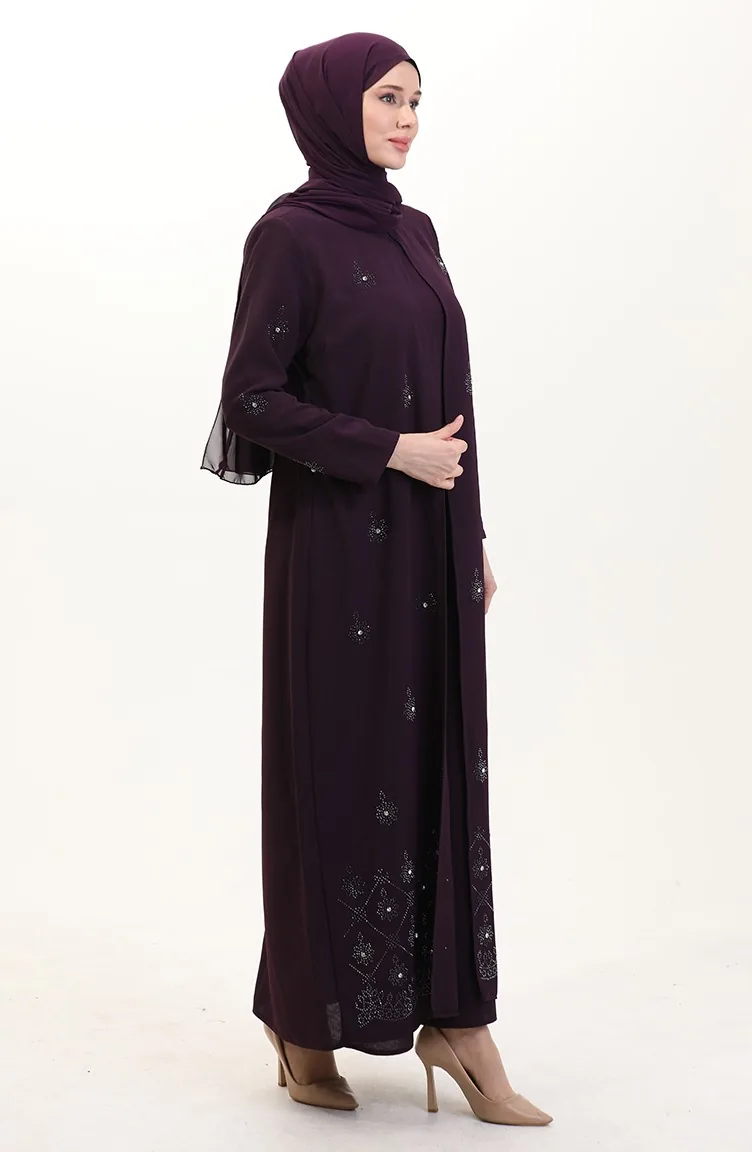 Übergröße A-Falten Kleid Mit Steinmuster 6205-06 Lila 6205-06