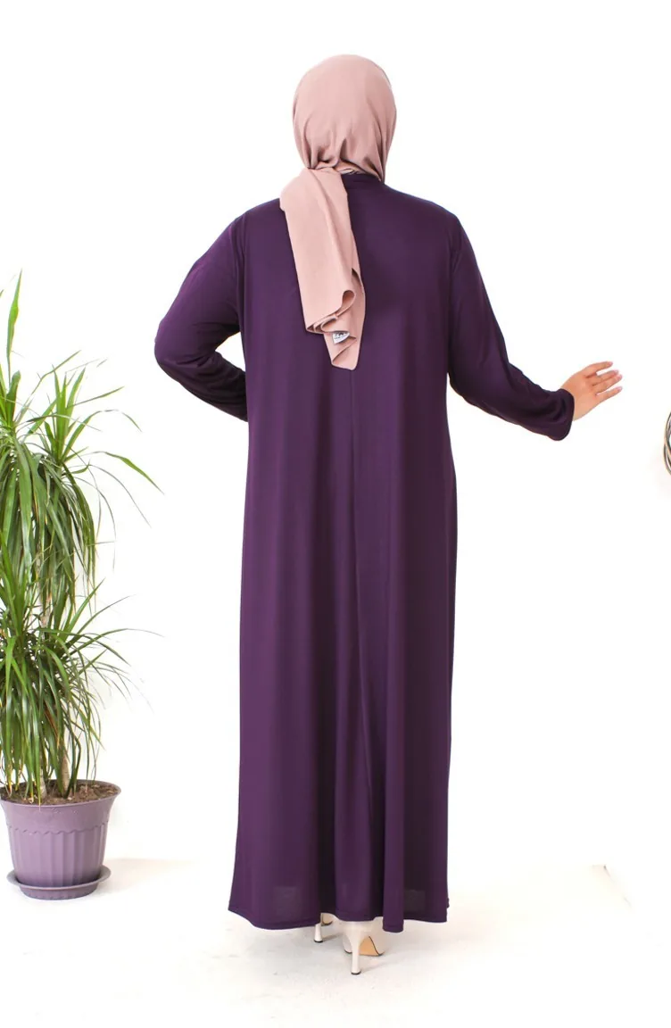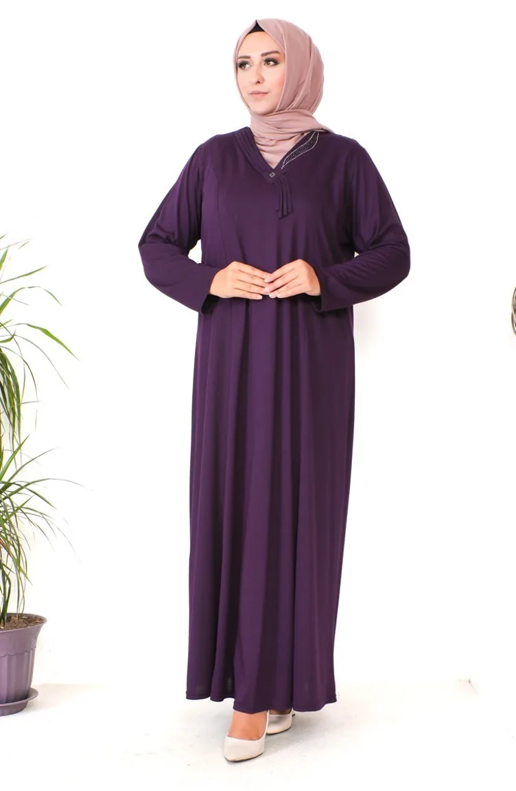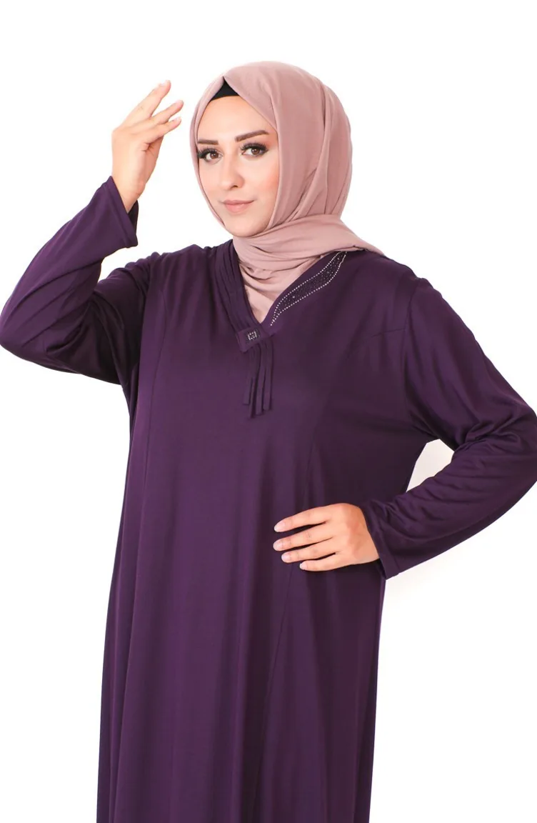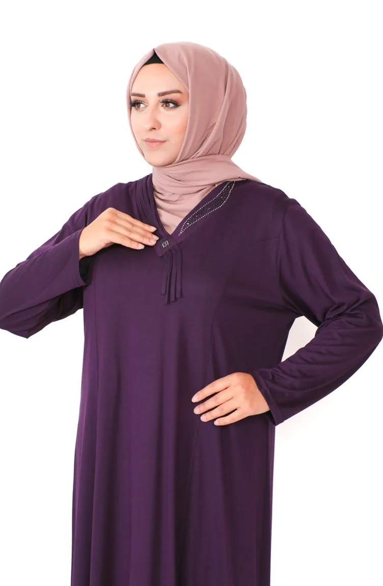 Übergröße Kleid Aus Gekämmter Baumwolle Mit Steinmuster 4932-06 Lila 4932-06