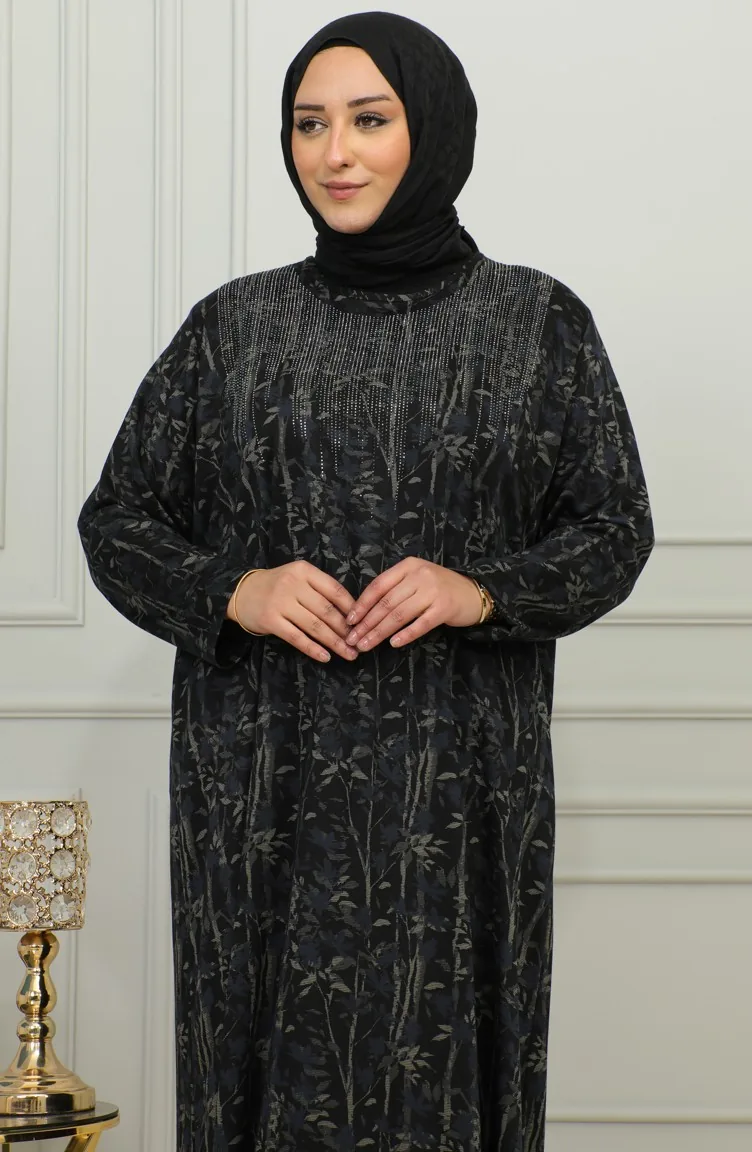 Übergröße Kleid Mit Steinmuster 4425-02 Blau 4425-02