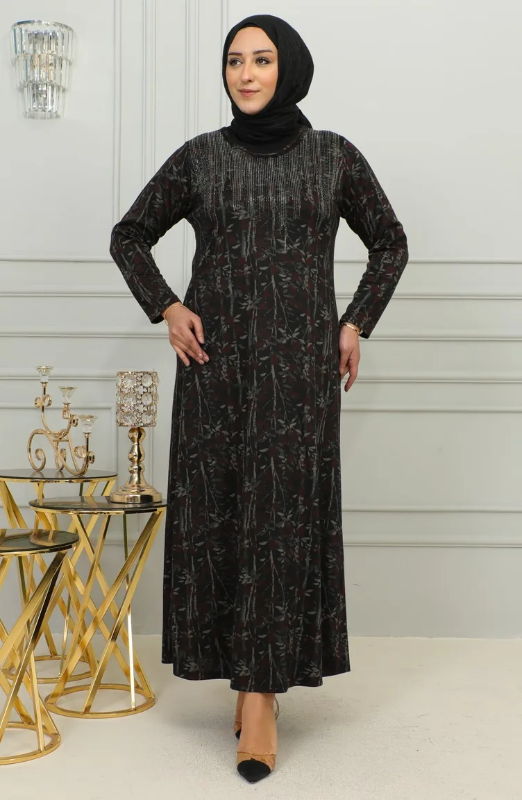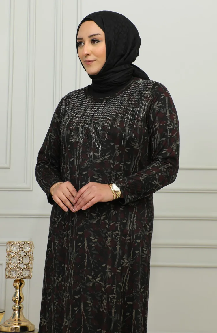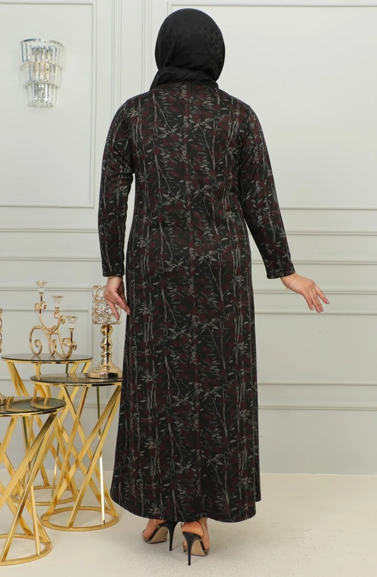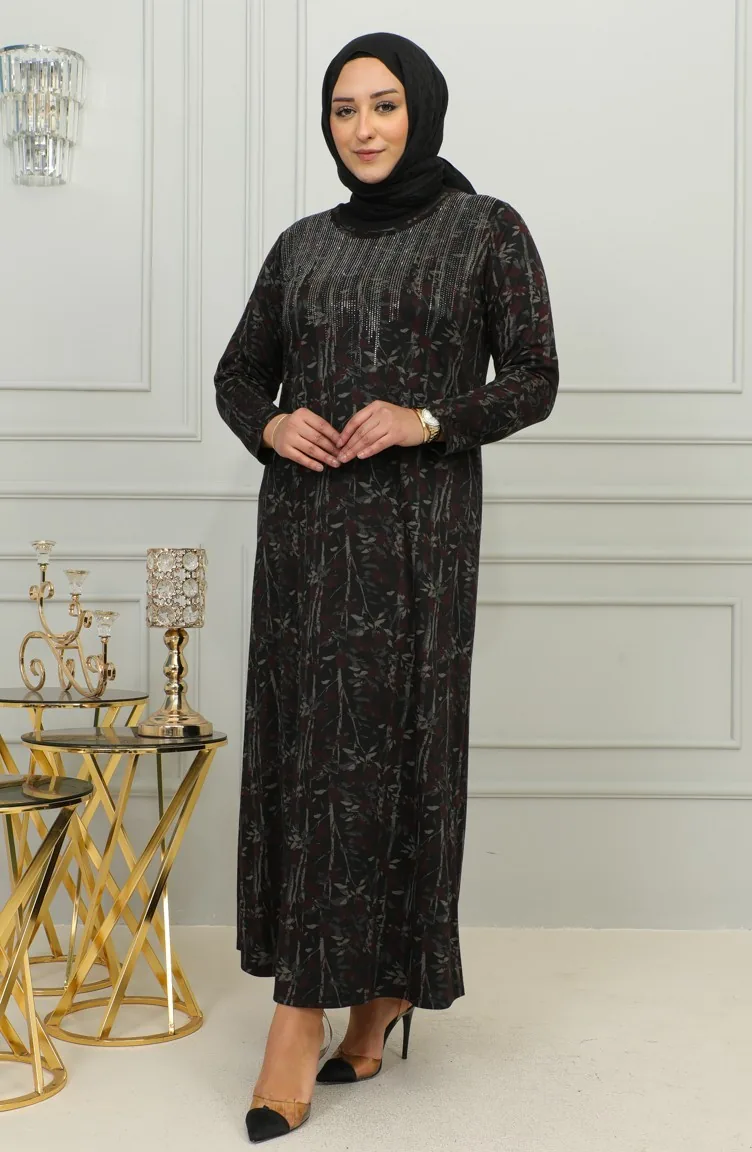 Übergröße Kleid Mit Steinmuster 4425-04 Weinrot 4425-04