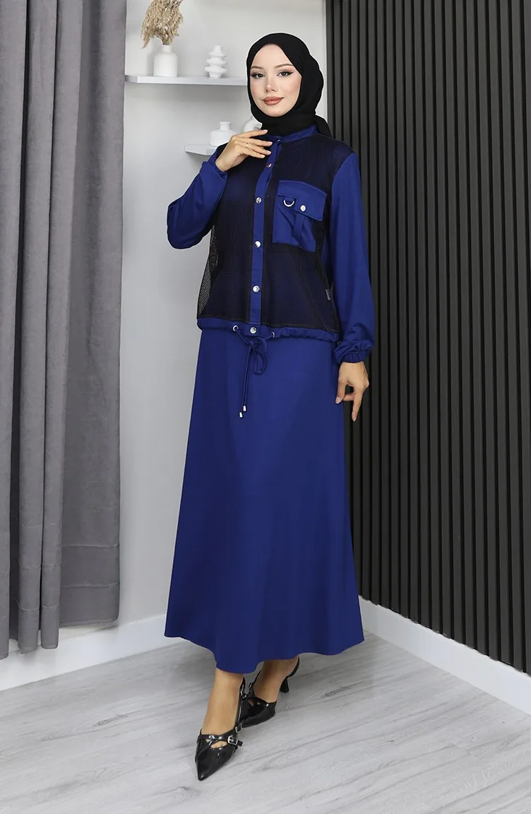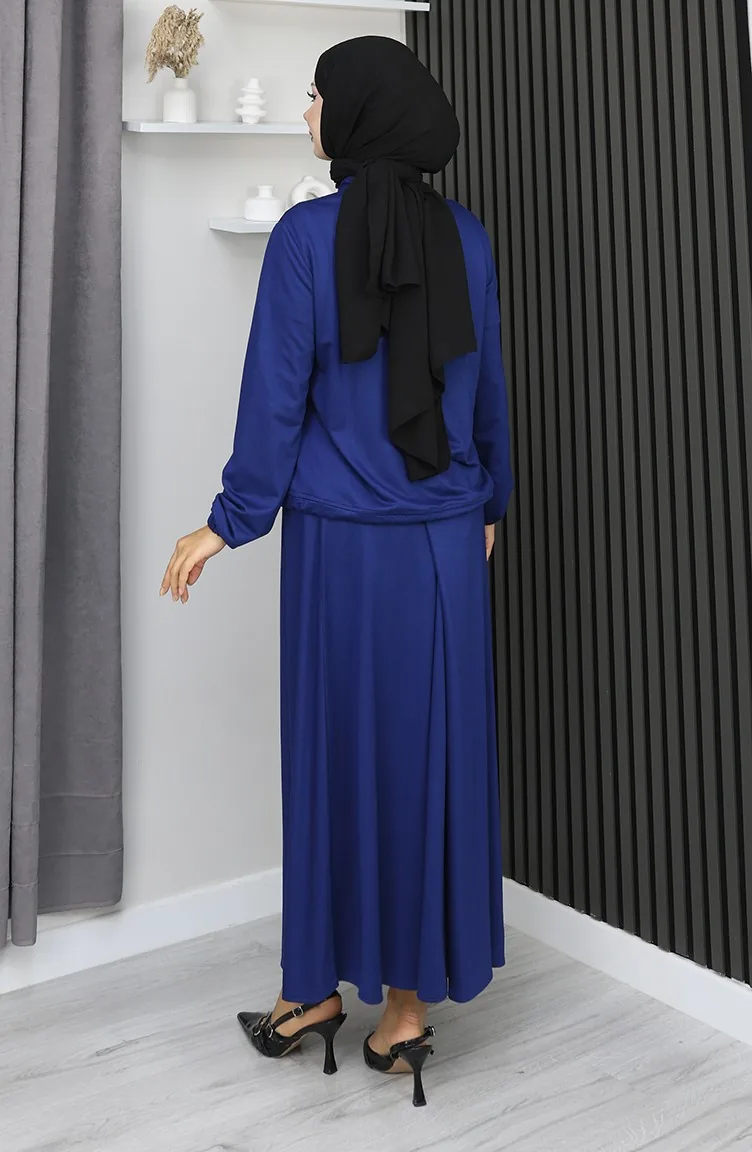 Anzug Aus Gekämmter Baumwolle Mit Druckknöpfen Modell 25003-04 Marineblau 25003-04