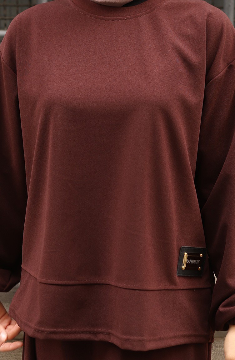 Zweiteiliges Set Aus Scuba-Stoff Mit Hijab-Tunika Und Rock 0221-04 Braun 0221-04