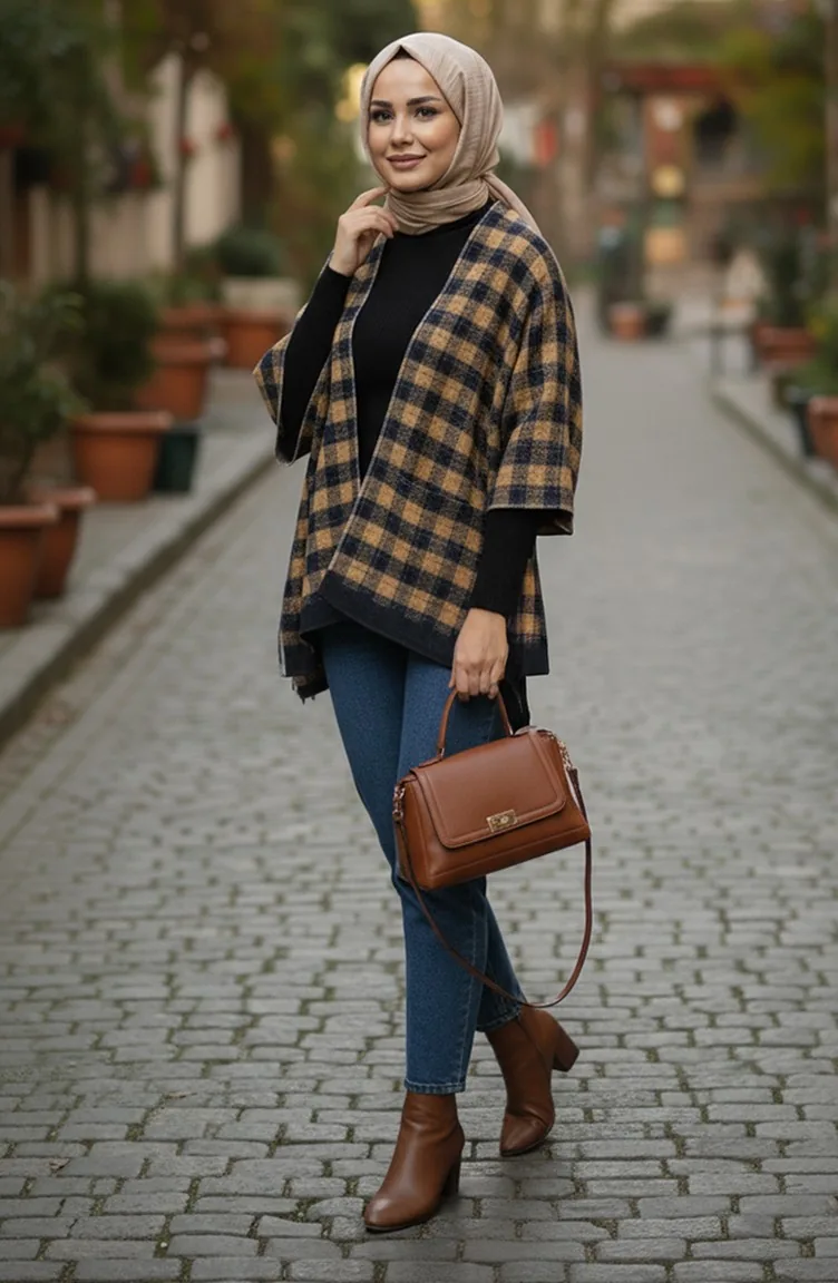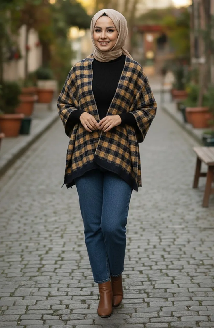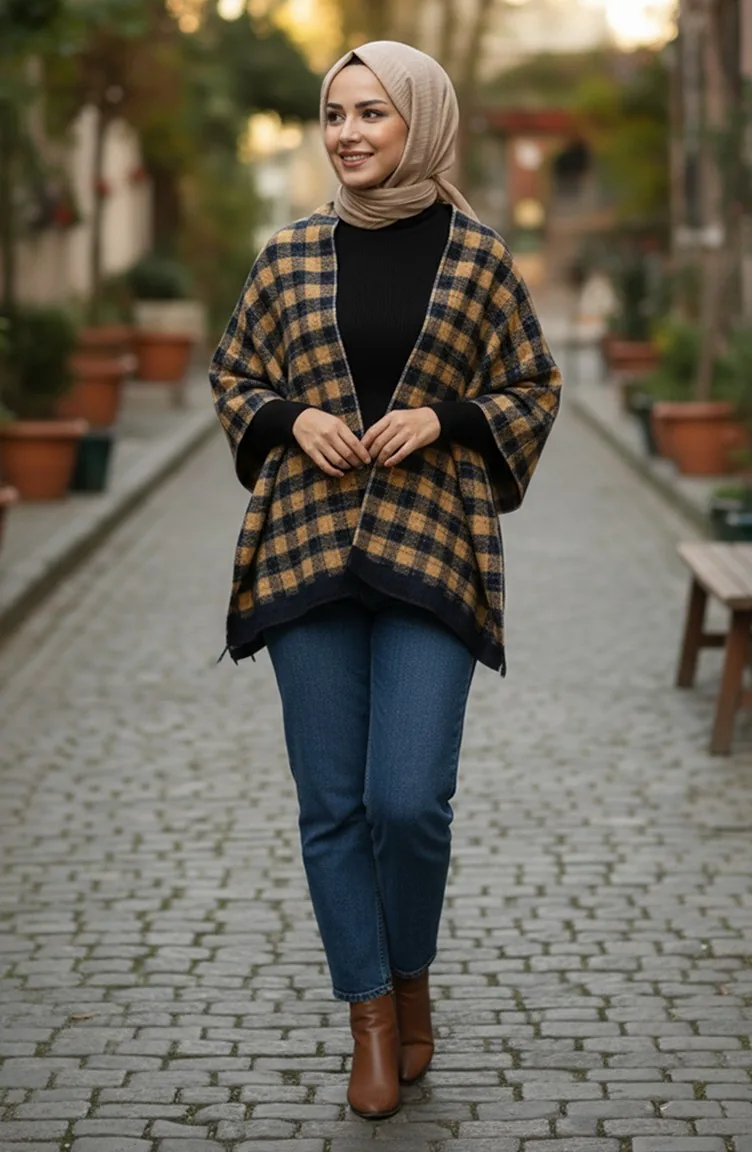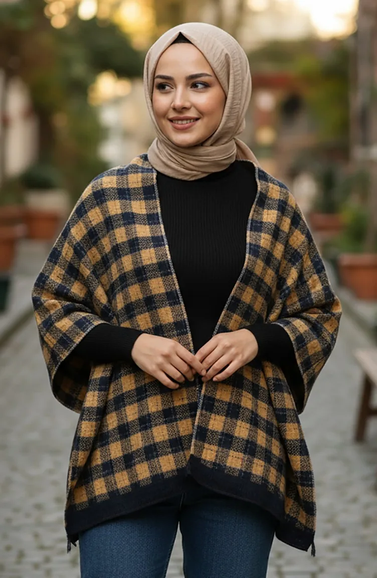 Schulterschal 1093-01 Senfblau Marineblau 1093-01