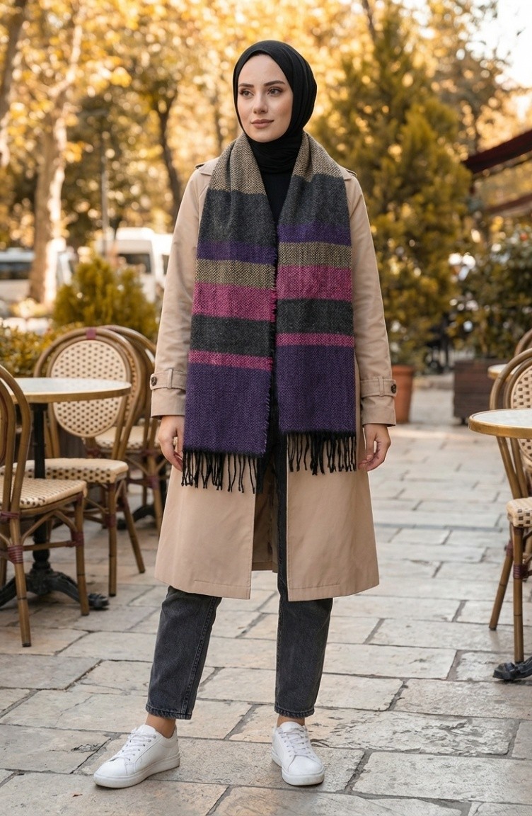 Schultertuch Mit Fischgrätenmuster 2035-05 Lila 2035-05