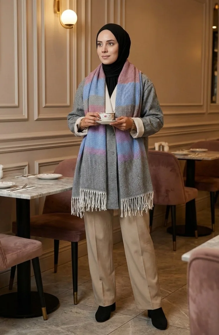 Weinrot farbe wurde verwendet. Es ist mit Acrylstoff hergestellt. Entworfen mit gemustertem Stoff. Dicker Stoff ist mit Winter konzipiert.