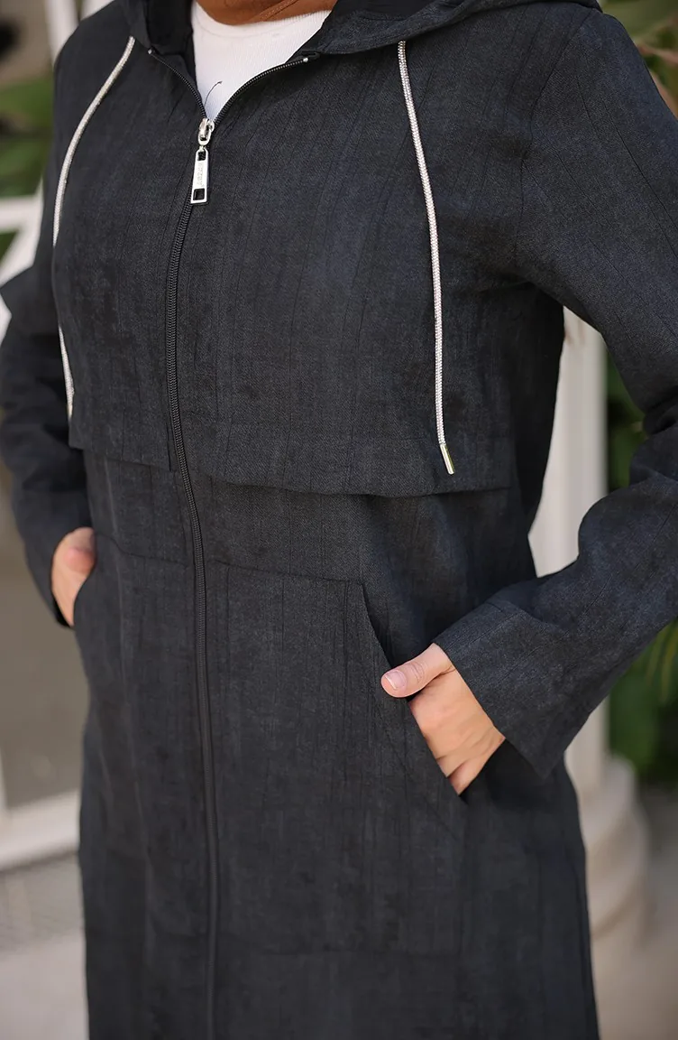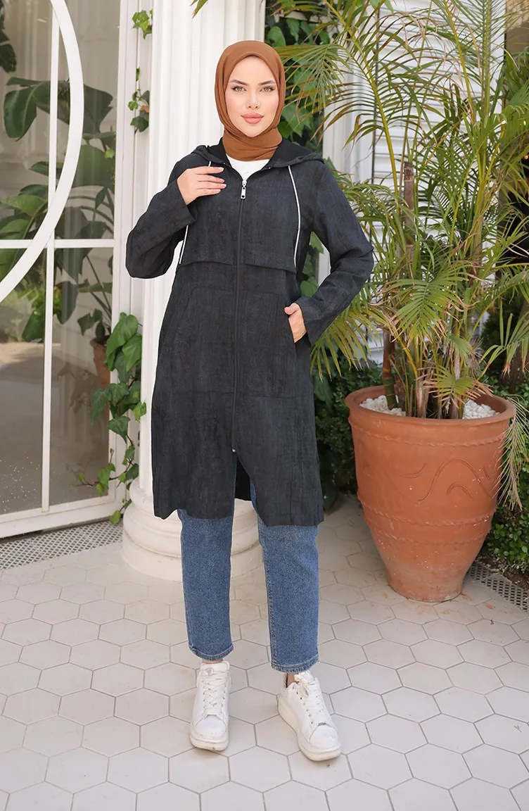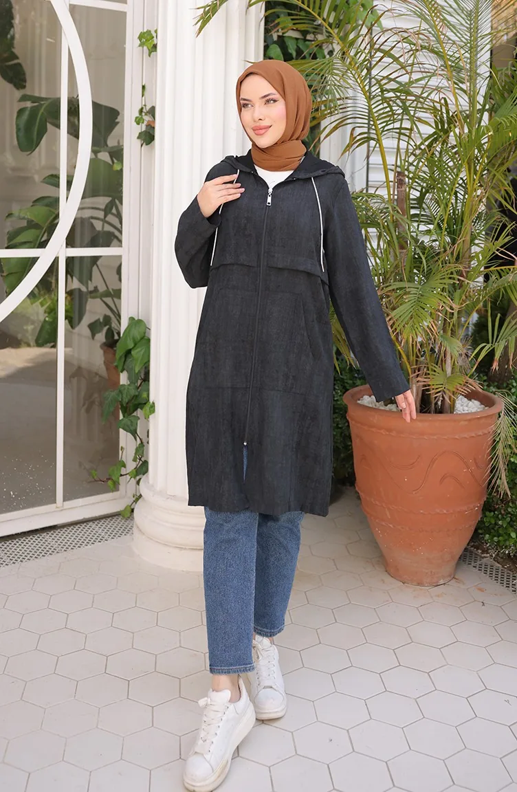 Mantel Mit Kapuze Und Reißverschluss 71282-01 Schwarz 71282-01