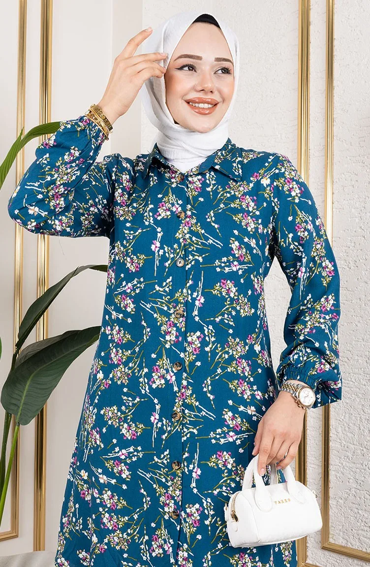 Asel Blumen-Viskose-Tunika 0174-04 Petrol 0174-04