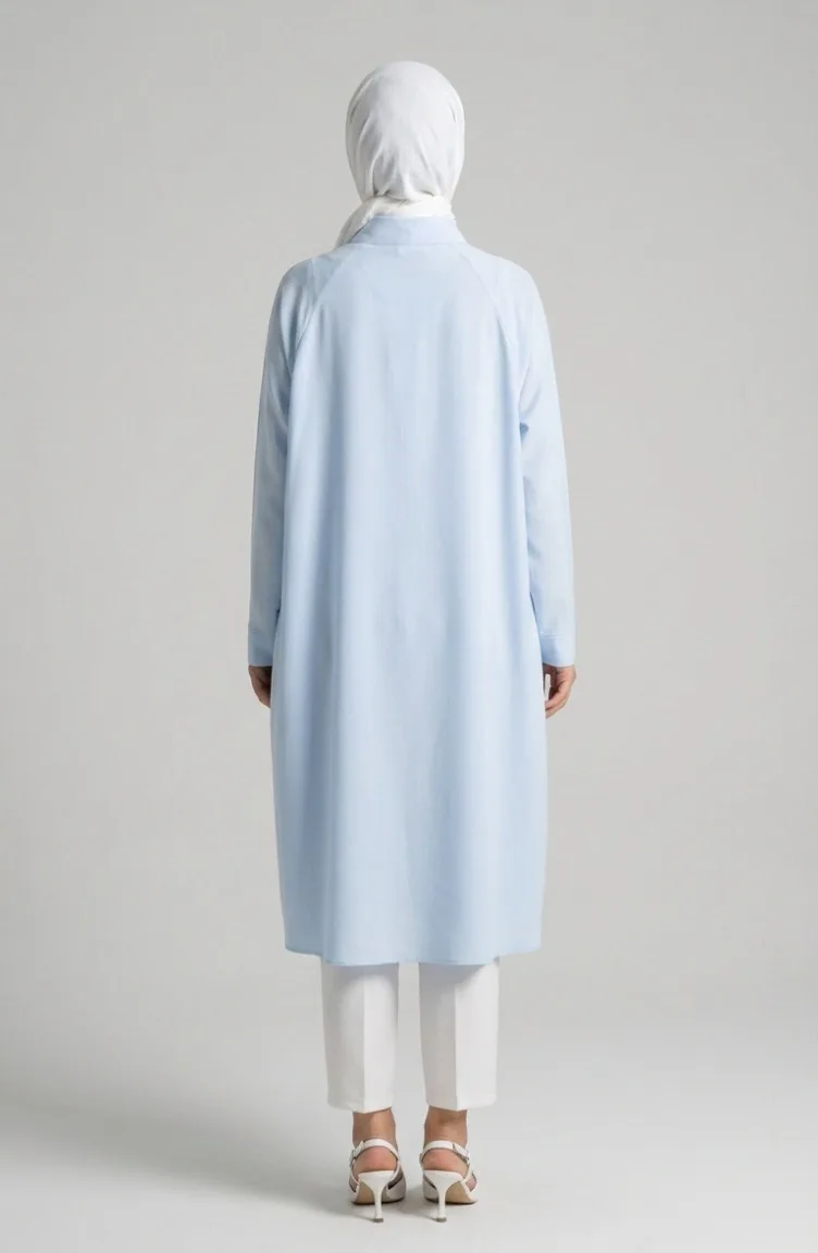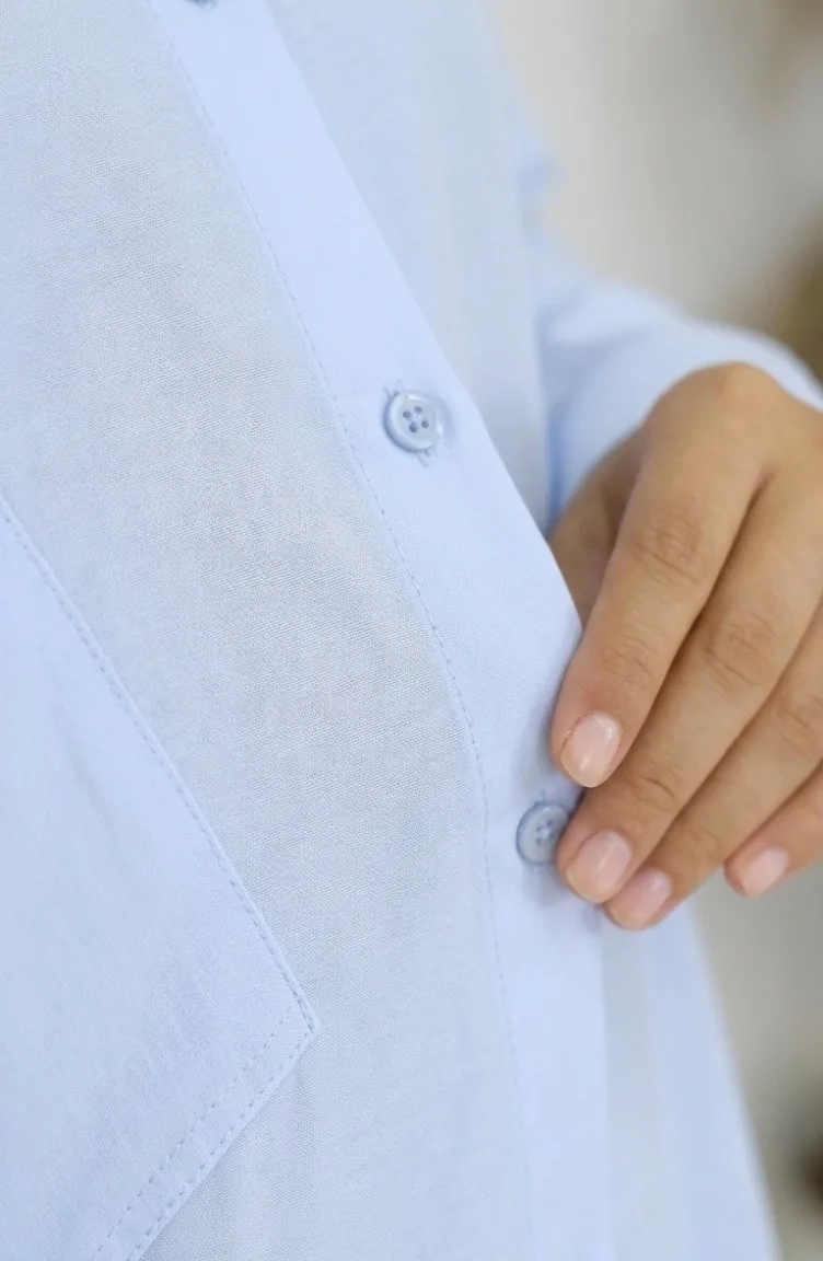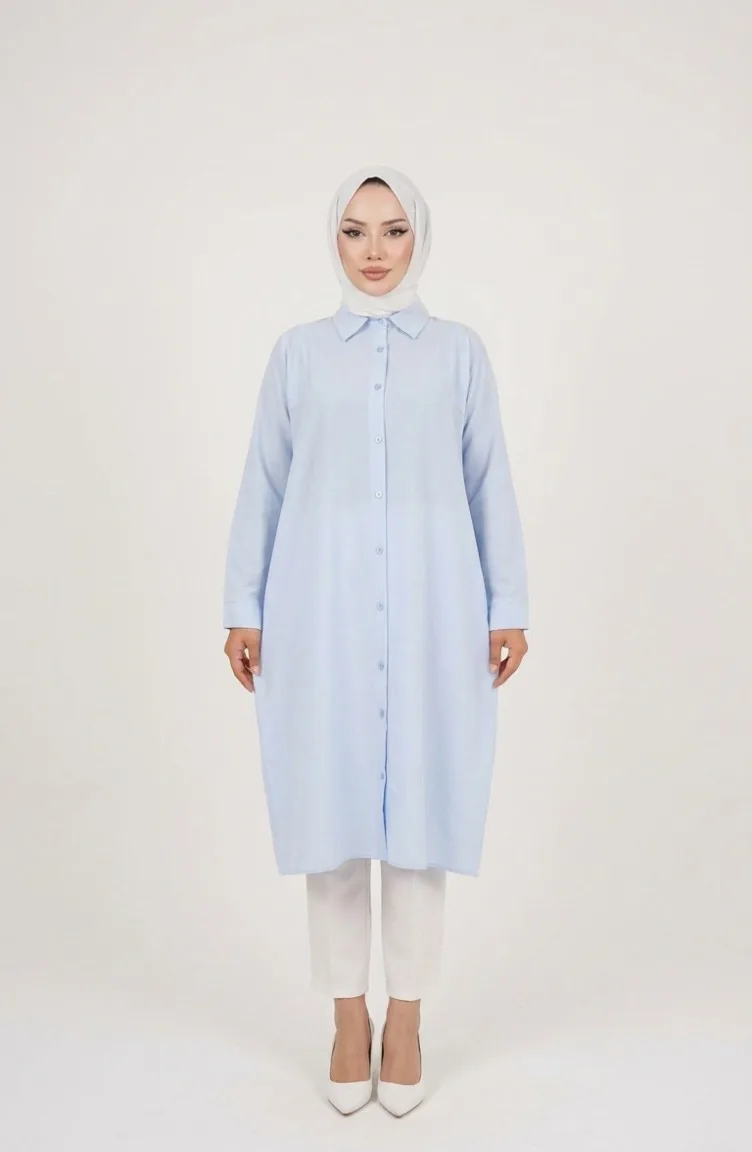 Babyblau wird benutzt. Terikoton Stofftyp. Es ist eine klare Sicht. Es wurde mit Knopf verwendet, um die Verwendung zu vereinfachen. Hemdkragen ist ein Muss für viele Kombinationen. Es ist für vier Jahreszeiten geeignet. Große Größen Option ist verfügbar.