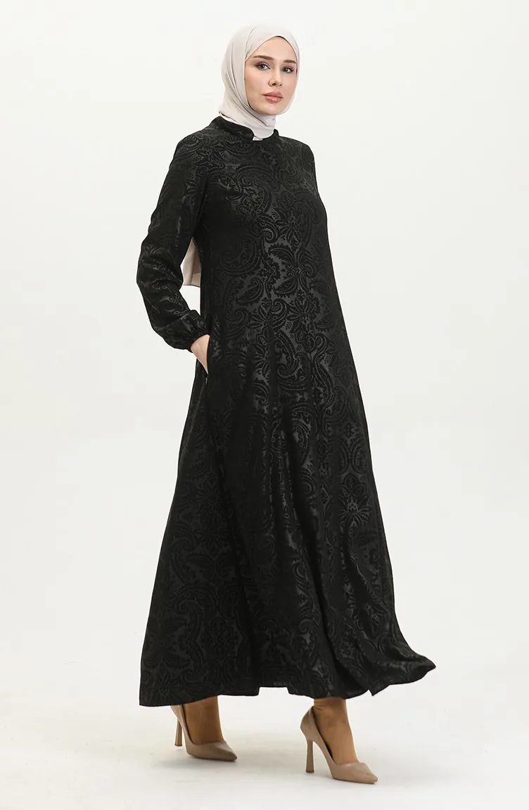 Gemusterte Adel Mevlana Abaya 3018C-01 Schwarz 3018C-01