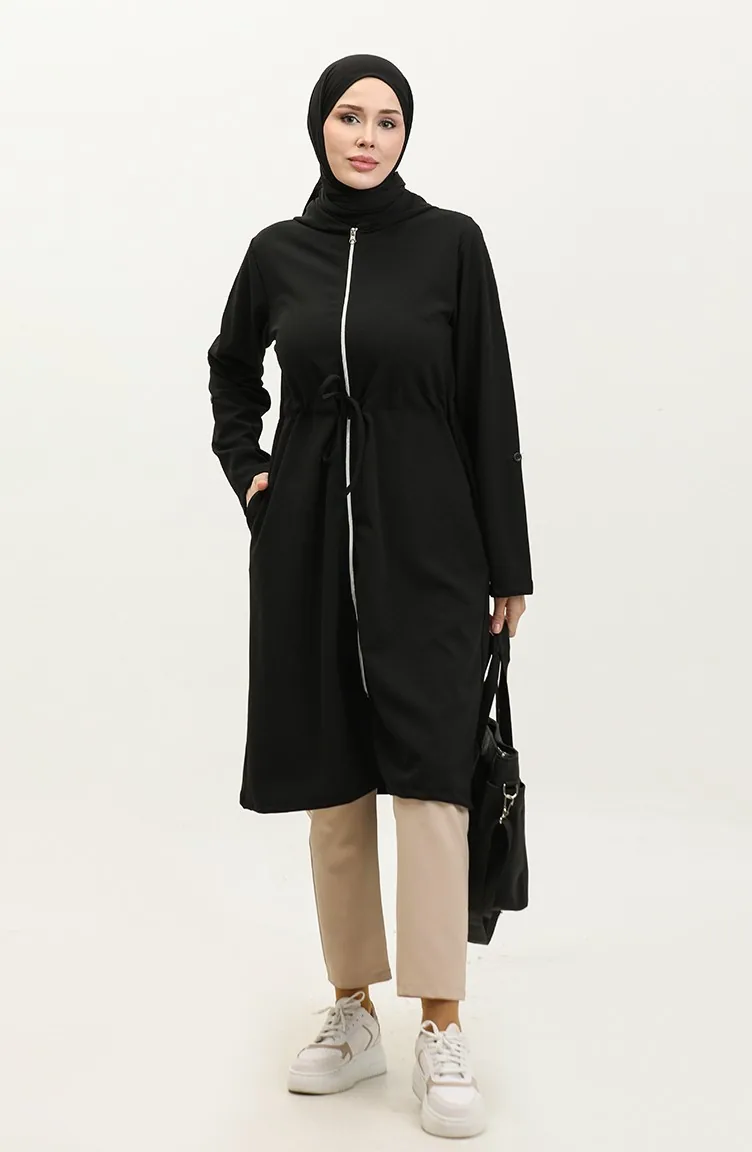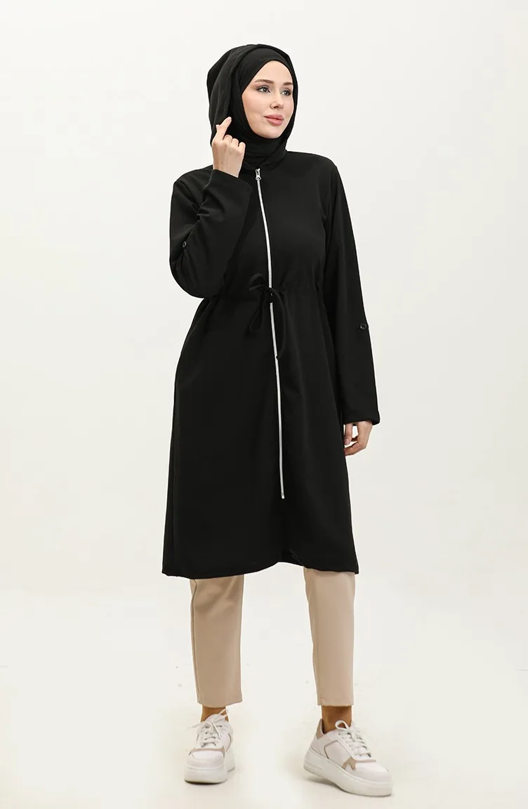 Azra Kapuzen-Taillen-Kordelzug-Cape 0328-03 Schwarz 0328-03