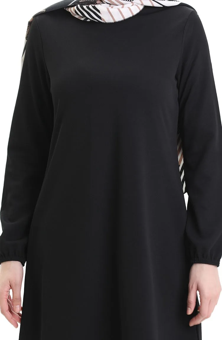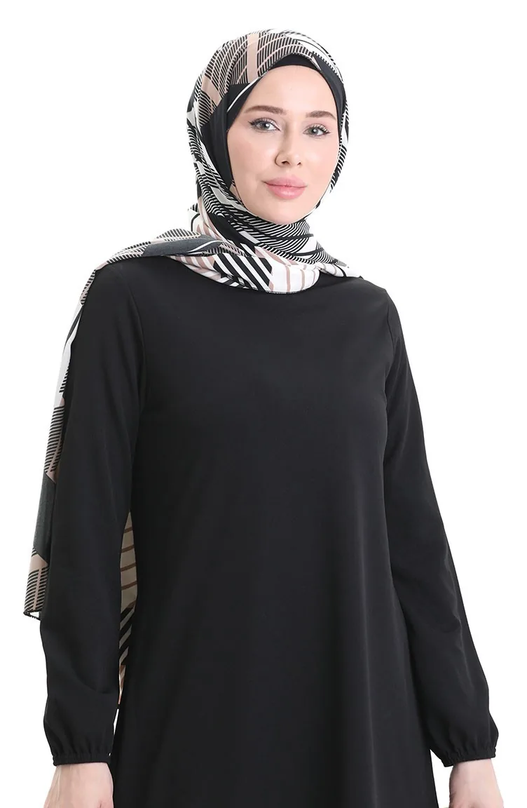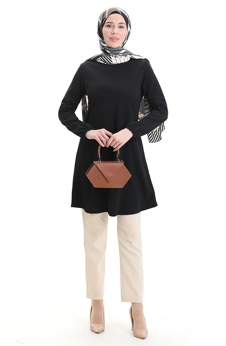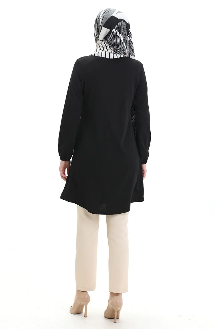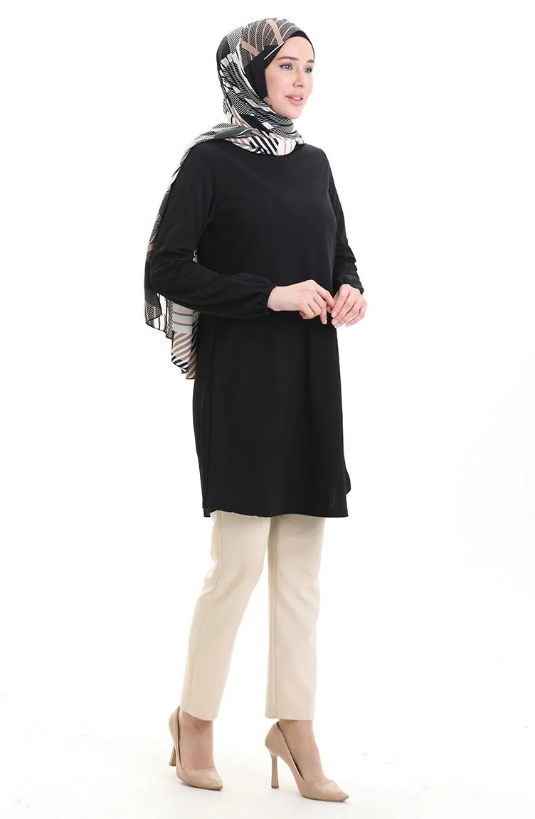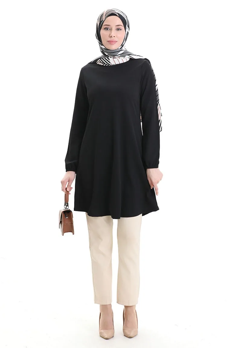Saisonale Fließende Tunika Mit Elastischen Ärmeln 8751-01 Schwarz 8751-01
