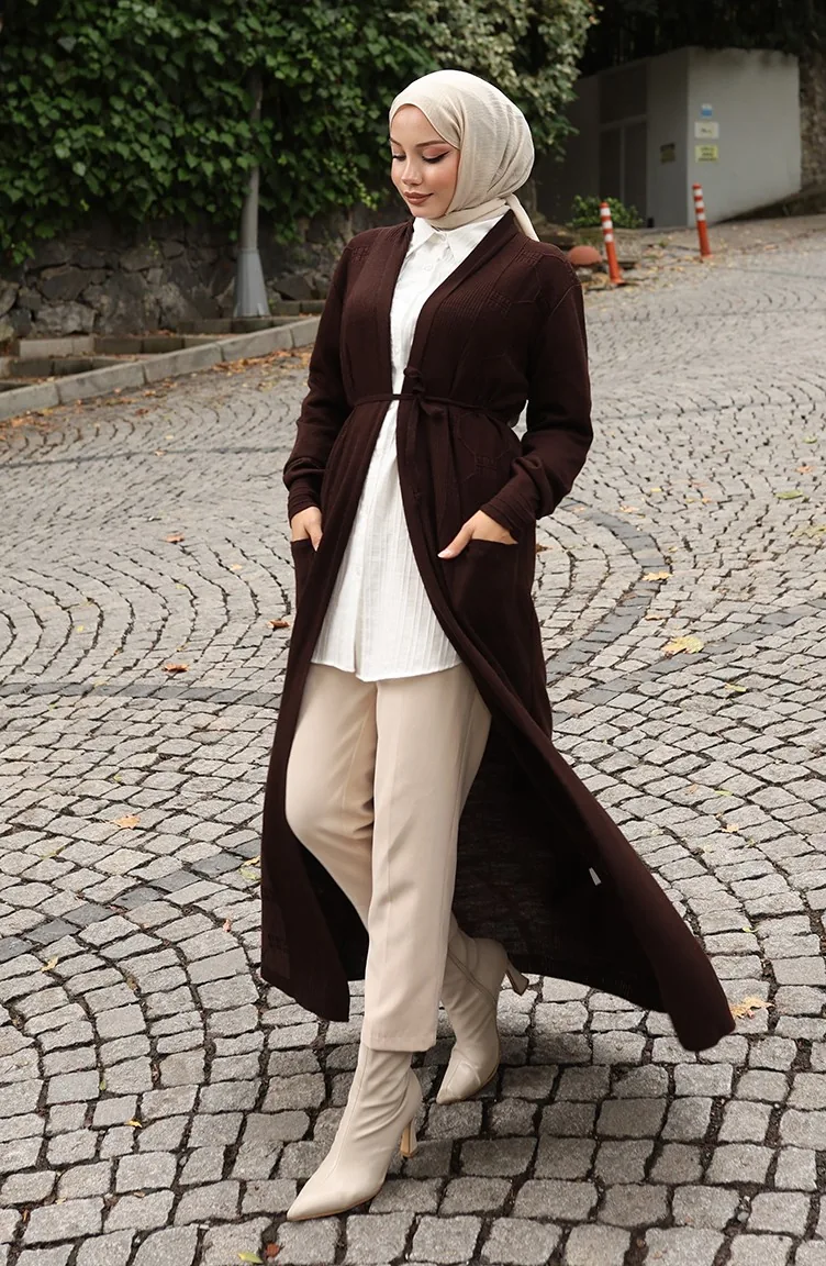 Gerippte Strickjacke 0030-02 Braun 0030-02