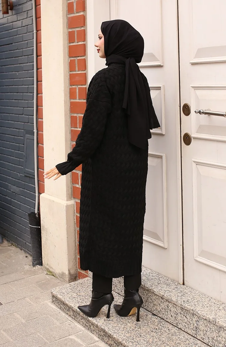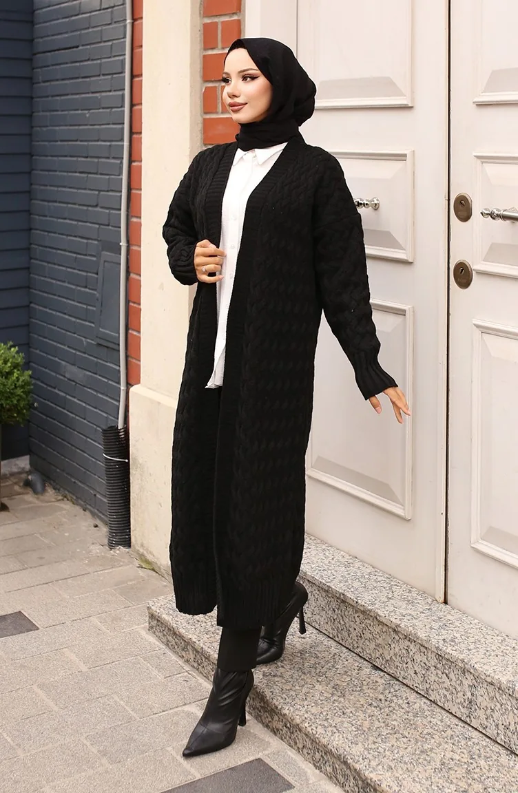 Schwarz farbe verwendet. Es ist mit Acrylstoff hergestellt. Bestickt mit Strickdetails. Dicker Stoff ist mit Winter konzipiert. Die Länge wird gemäß den Standardgrößen angepasst.