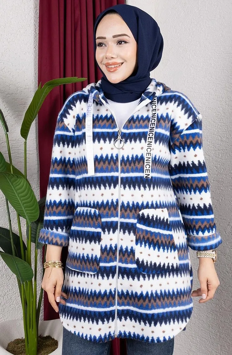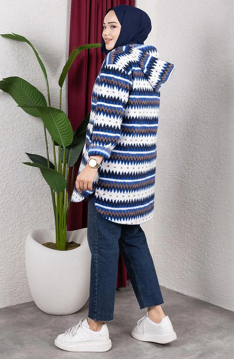 Gemusterter Kapuzen-Plüschcardigan 2062-03 Saks 2062-03