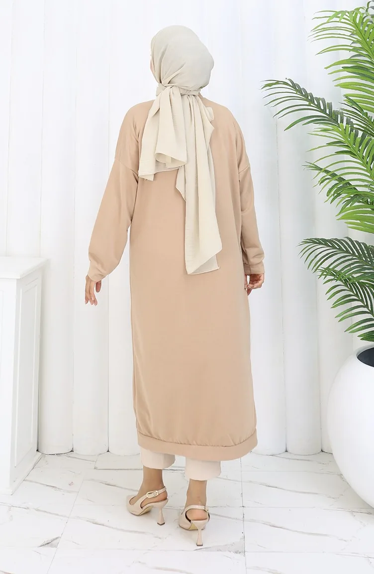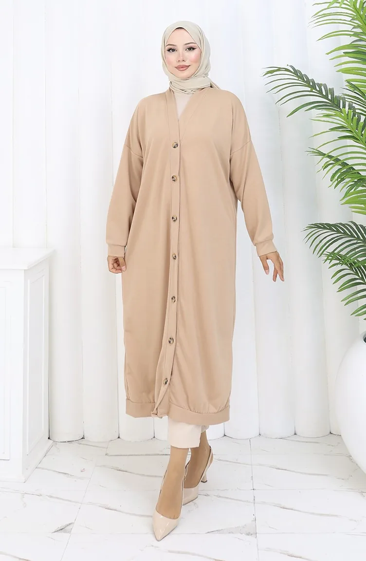 Lange Strickjacke Mit Doppelfaden Und Knöpfen 0181-02 Beige 0181-02