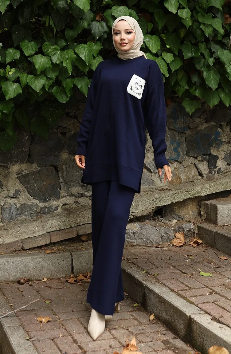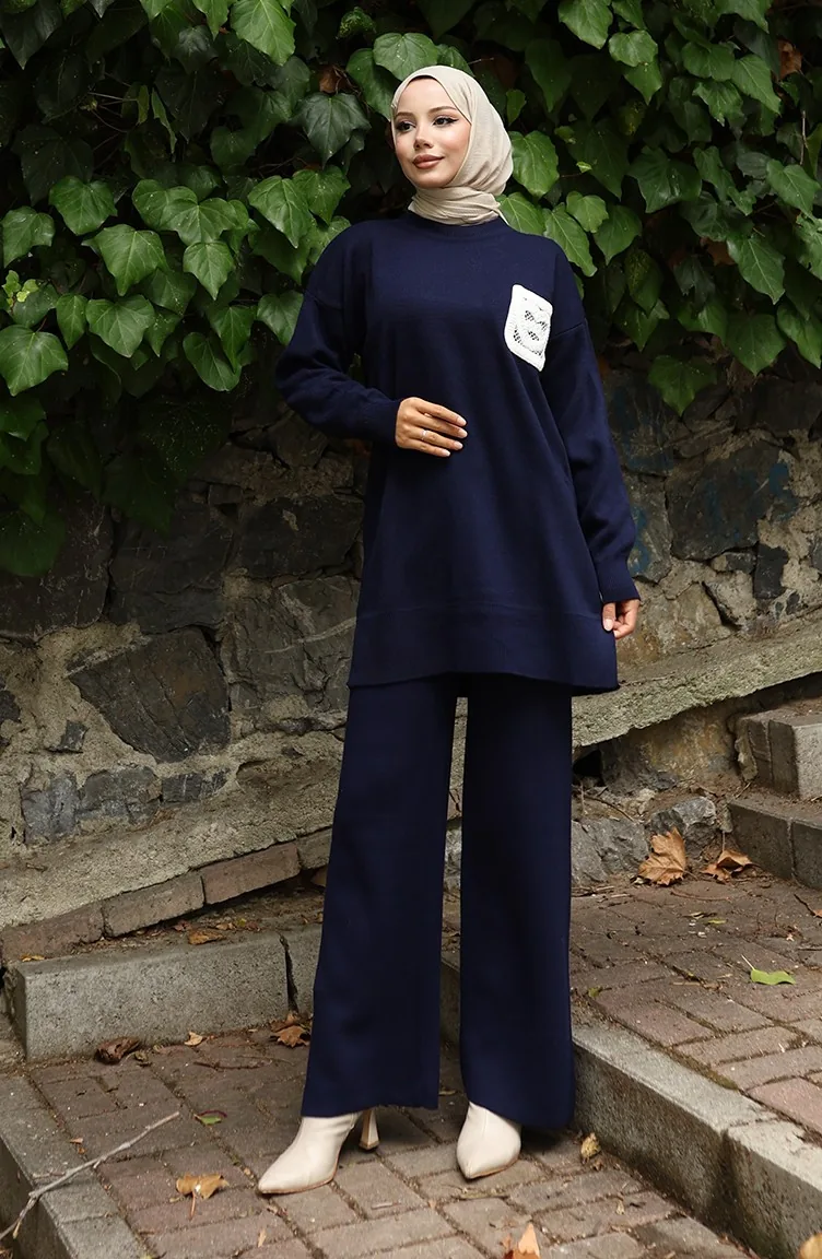 Strick Tunika Hose Zweiteiler 1029-03 Dunkelblau 1029-03