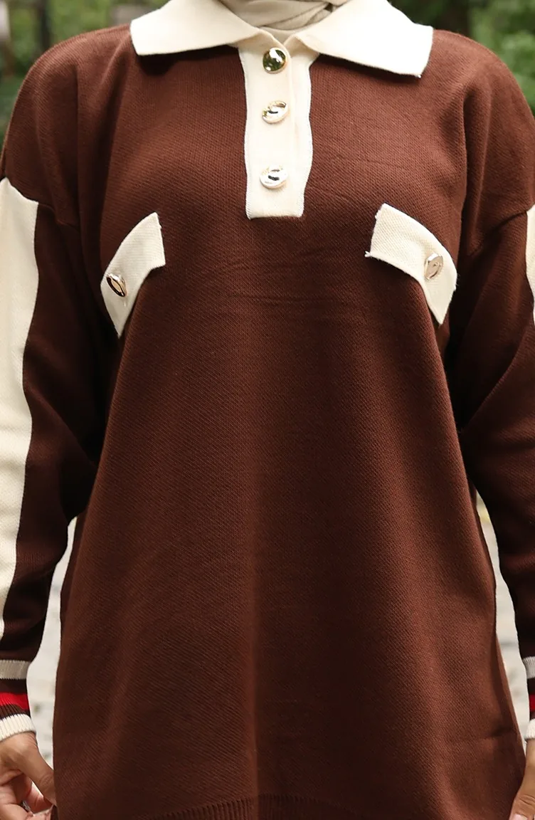 Strickanzug Mit Polokragen Tunika Und Hose Zweiteilig 1048-03 Braun 1048-03