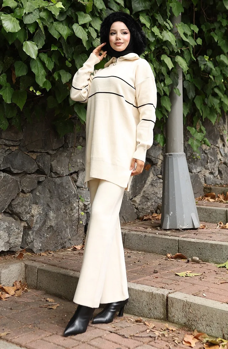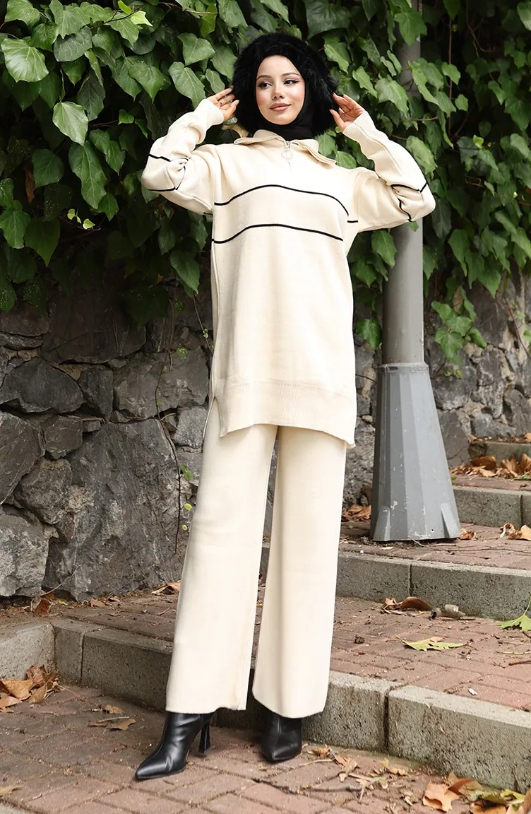 Strickanzug Mit Reissverschluss Und Tunikahose 2-teilig 1050-03 Beige 1050-03