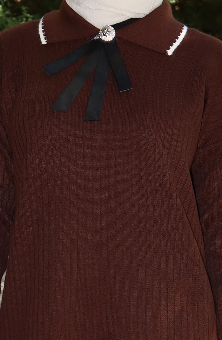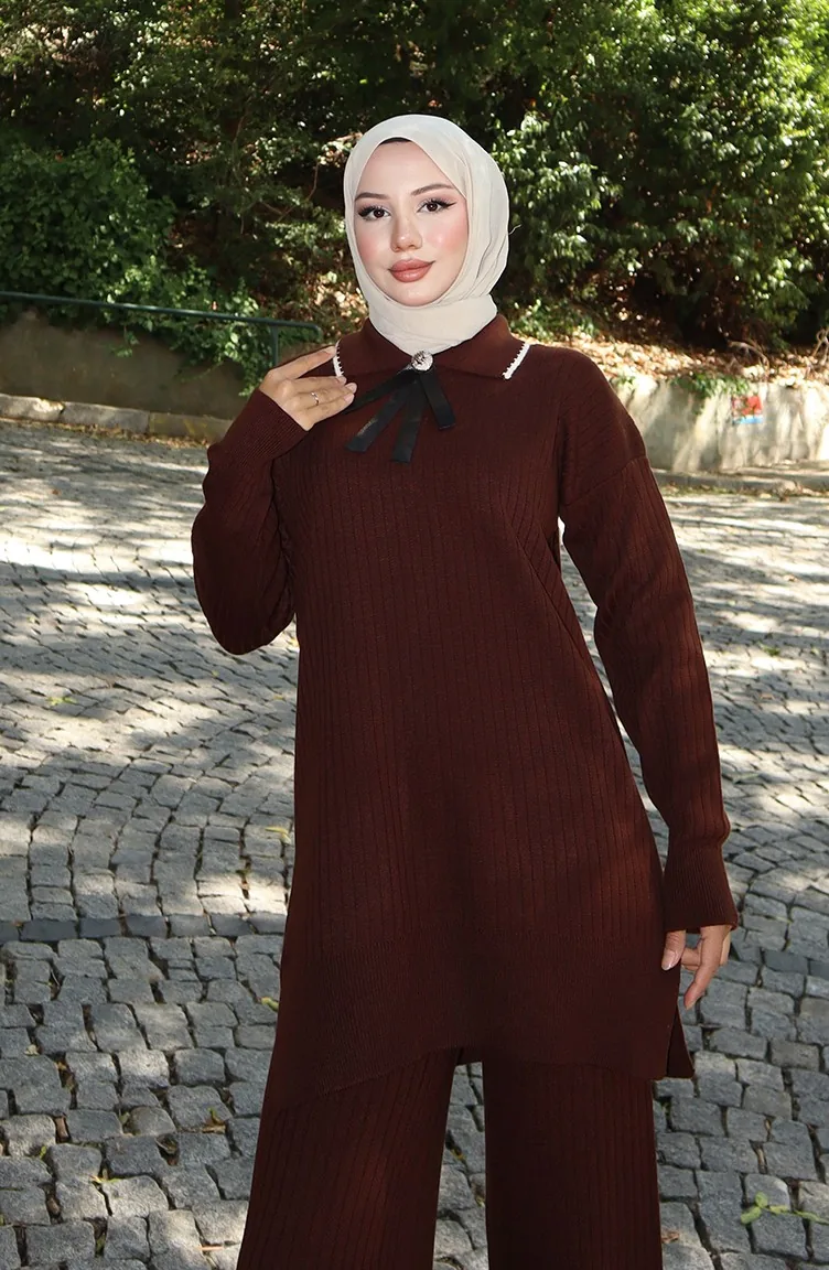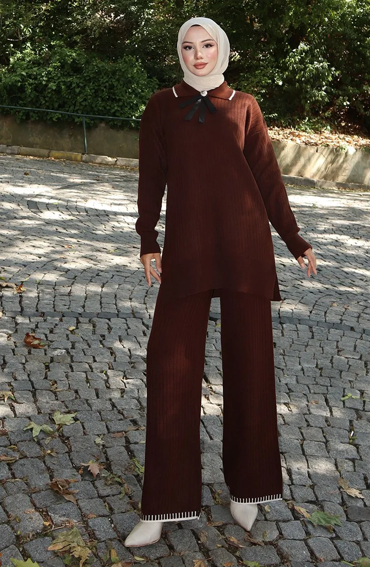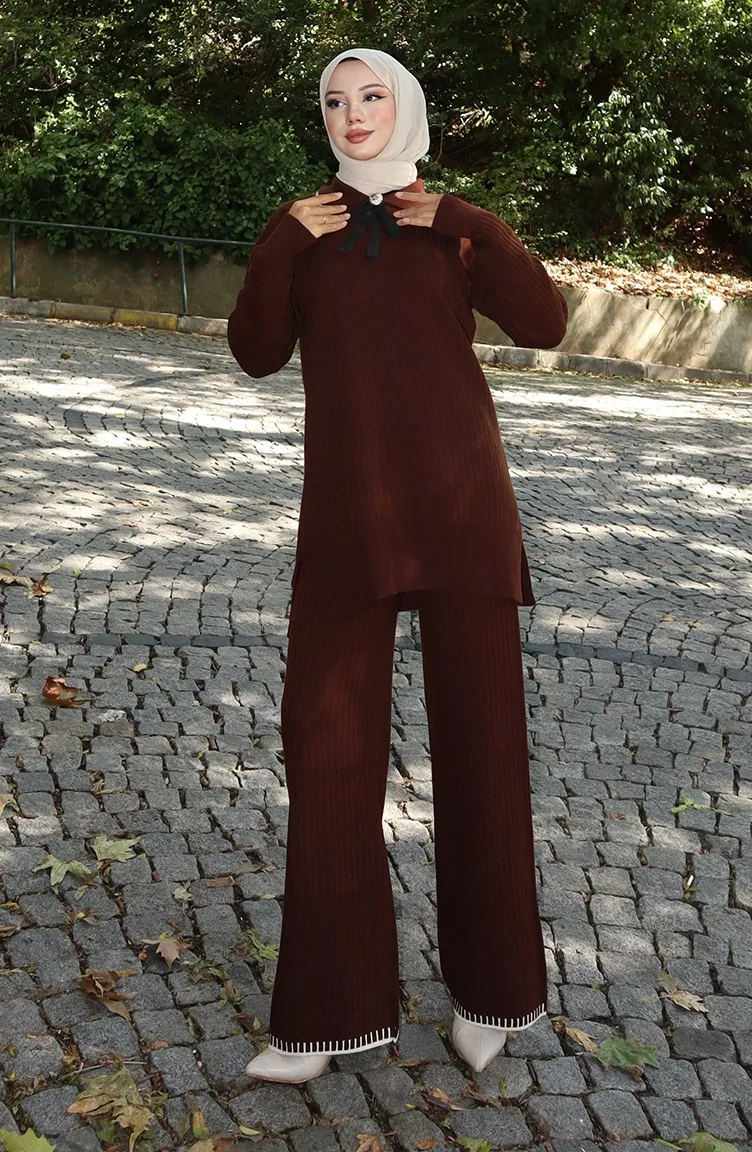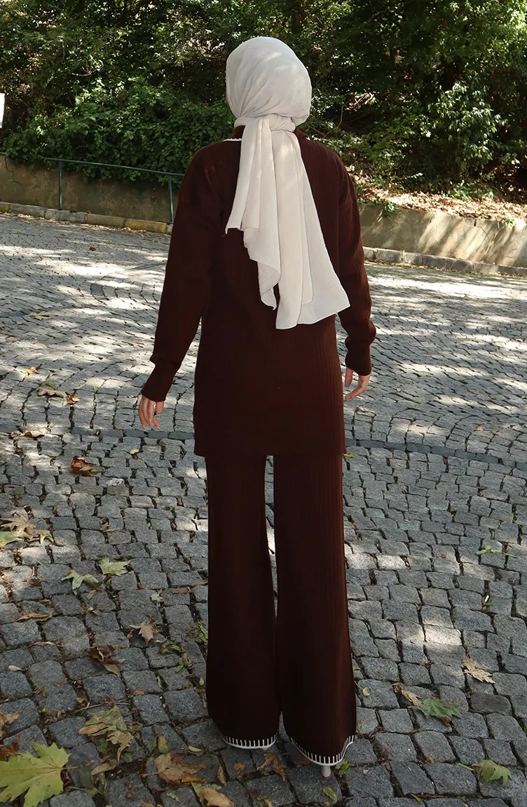 Strickmode Band Detail Tunika Hose Zweiteiler 1064-07 Braun 1064-07