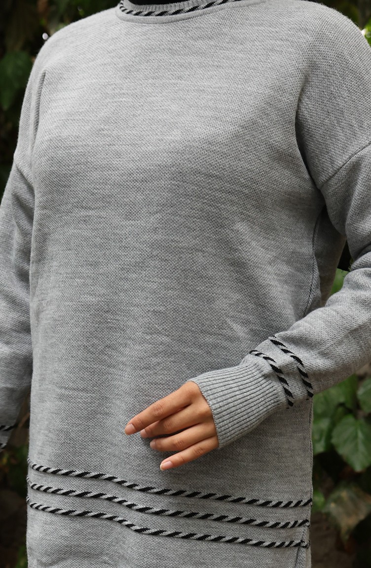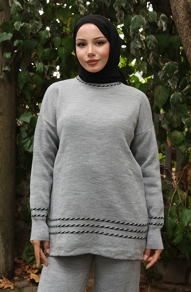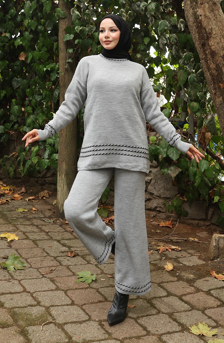 Strickmode Bias Übergangspullover Hose Zweiteiler 0017-06 Grau 0017-06