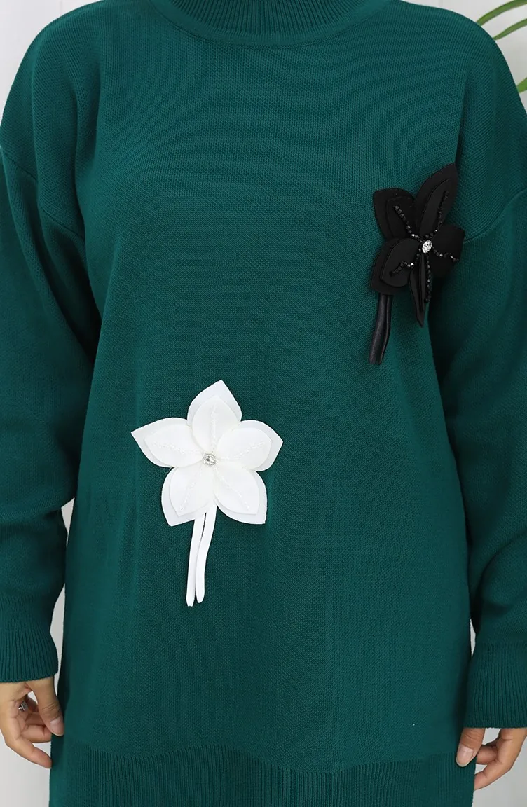Petroleumfarbe wird verwendet. Es ist mit Acrylstoff hergestellt. Es ist eine klare Sicht. Wenn die Tunika mit einem anderen Produkt kombiniert wird, erhält man einen schönen Anzug. Dicker Stoff ist mit Winter konzipiert. Der Körpergröße, den die Models trägt, ist optisch visuelle körpergröße.